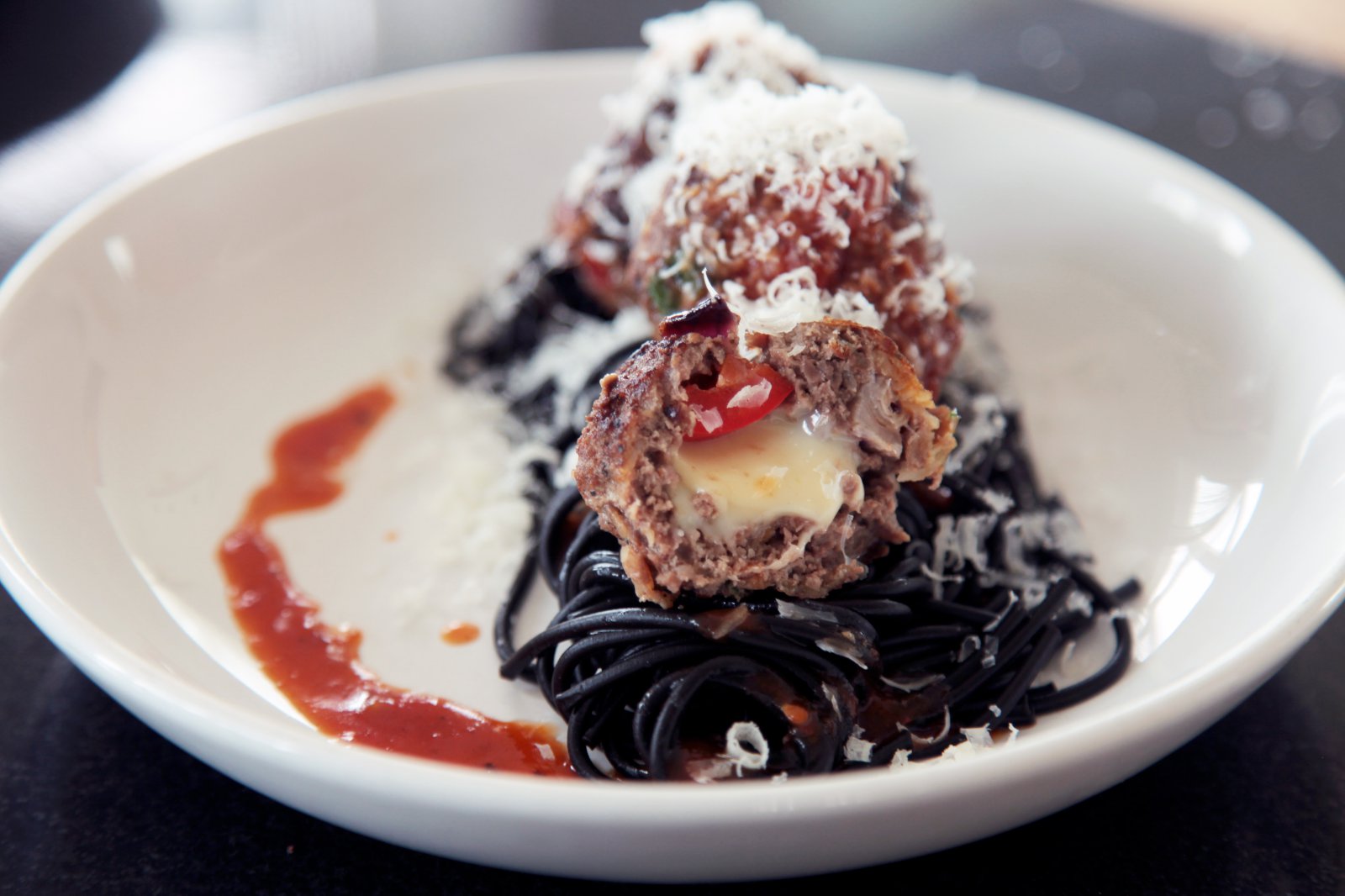 Kjötbollur eru gómsætar og matur sem allir elska, börn og fullorðnir. Kjötbollur er hægt að setja upp um eina deild með að setja ostabita í hverja bollu.