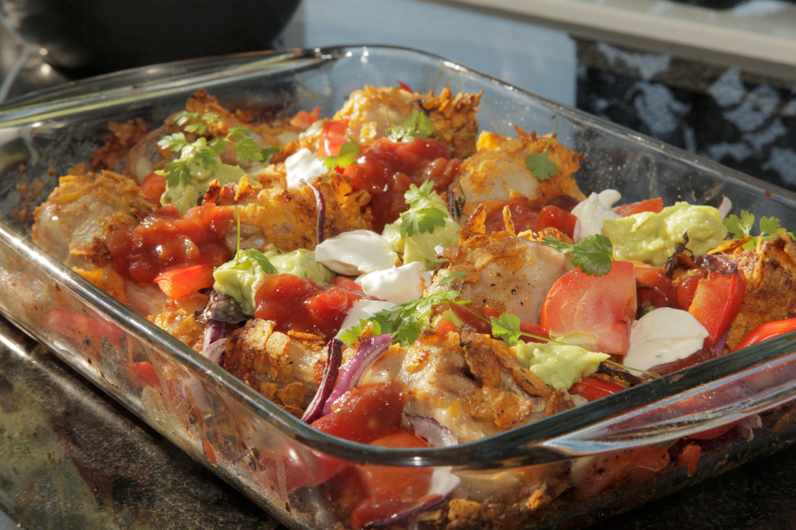 Kjúklingabringur í kókosbaði og kornflexleggir