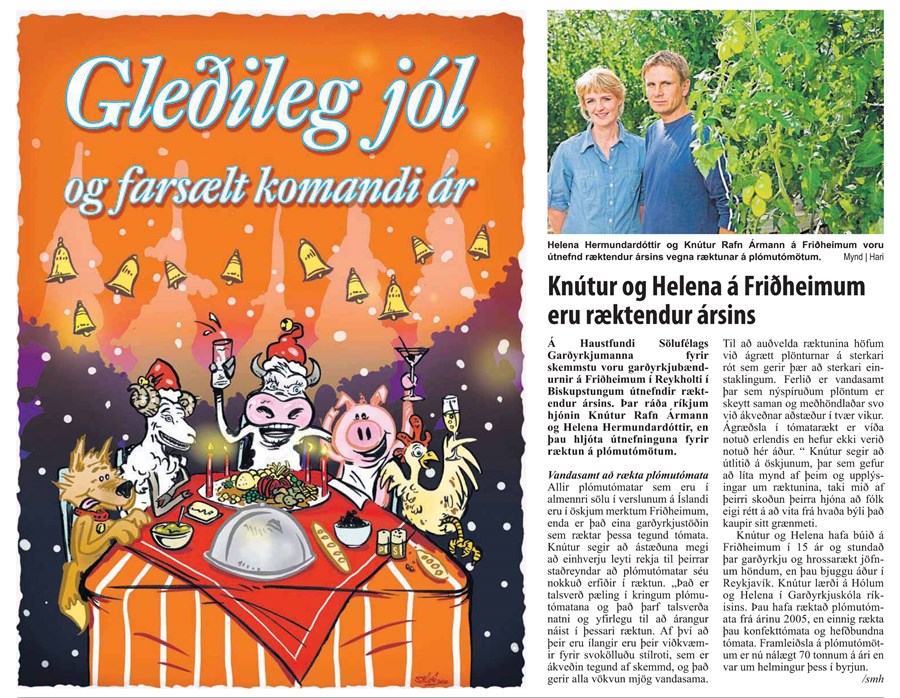 Í jólablaðinu fyrir sex árum var sagt frá því á forsíðu að Knútur Rafn Ármann og Helena Hermundardóttir, garðyrkjubændur á Friðheimum, hefðu verið útnefnd ræktendur ársins á Haustfundi Sölufélags Garðyrkjumanna.