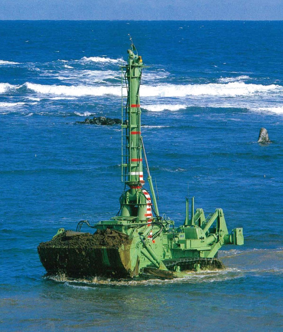 Forvitnilegt er að skoða þessa Komatsu jarðýtu þegar litið er til þess vandræðagangs sem verið hefur við að halda Landeyjahöfn opinni. Í þessari ýtu eð ámokstursskóflu er loftinntak og stýringar einfaldlega leiddar um margra metra loftstokk sem er þá það eina sem stendur upp úr sjó þegar ýtan er við sína vinnu. Líka eru til slík tæki með sandsugur í stað ýtutannar og dæla þá ýmist í tank á tækinu sjálfu eða flytja til stút á samdælurörum á botninum sem liggja síðan upp á land. Hönnun þessara véla er í dag ekki síst knúin áfram af námufyrirtækjum sem leitað hafa leiða til að vinna dýrmæta málma eins og gull og fleira af botni sjávar.