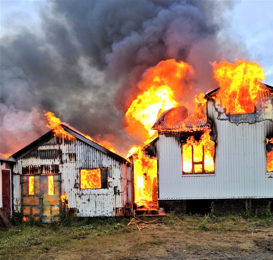 Það logaði glatt í gömlu íbúðarhúsi á bænum Akbraut í Holtum þriðjudagskvöldið 21. júlí en þá var kveikt í húsinu þannig að slökkviliðsmenn hjá Brunavörnum Rangárvallasýslu gætu æft viðbrögð við bruna.