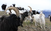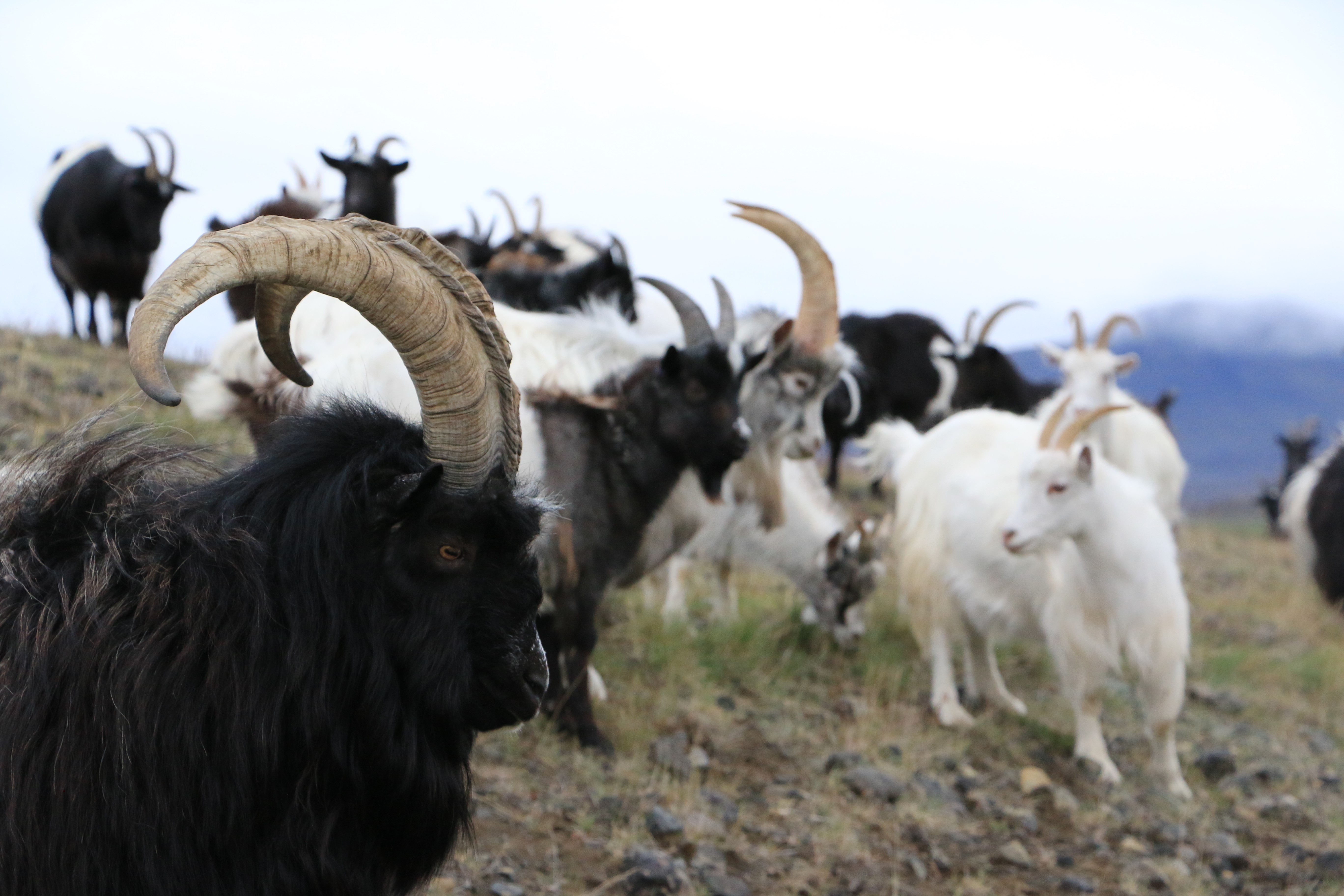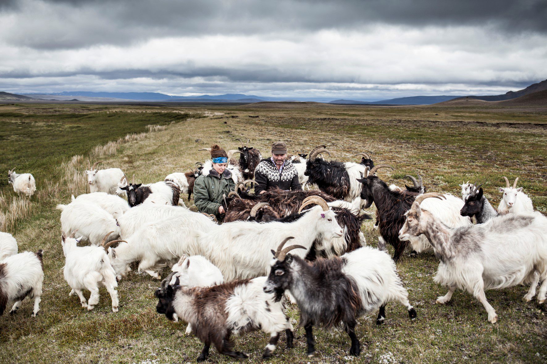 Elísabet Svava Kristjánsdóttir og Vilhjálmur Vernharðsson, bændur á Möðrudal, innan um geiturnar.                                                                                                                 Mynd / Ragnhildur Aðalsteinsdóttir