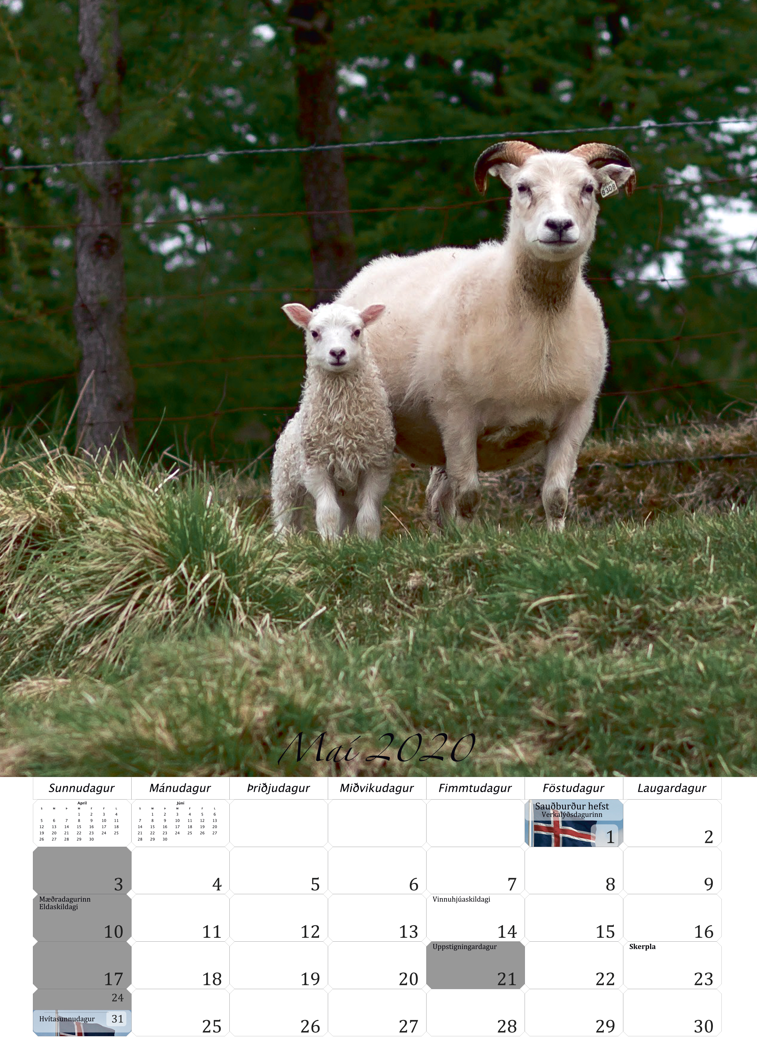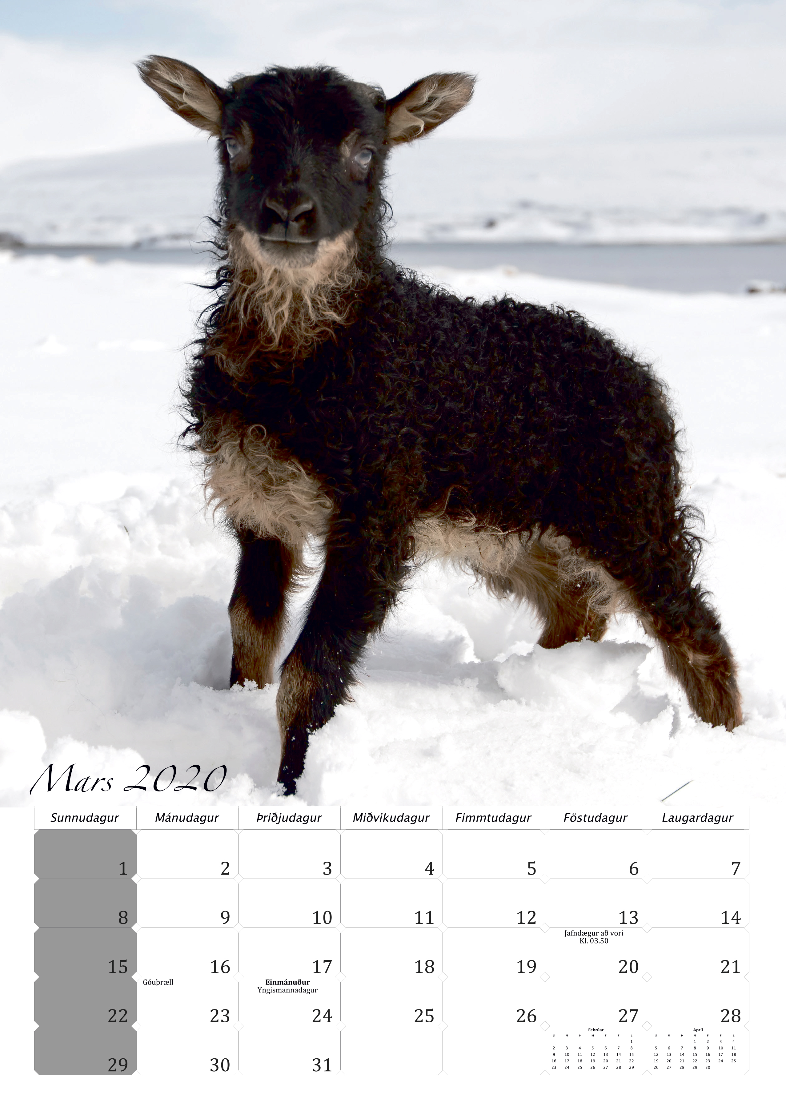 Að venju prýða dagatalið stórar andlitsmyndir af fallegum, marglitum, nýlega fæddum lömbum í náttúrulegu umhverfi. Dagatalið er í A4 stærð og er hver mánuður á einni blaðsíðu. Það er gormað með upphengju og því auðvelt að hengja það upp þar sem hentar. Á það eru merktir allir hefðbundnir helgi- og frídagar, einnig eru merkingar fyrir fánadaga, komu jólasveinanna, gömlu mánaðarheitin og ýmsa aðra daga er tengjast sögu lands og þjóðar. Dagatalið er því bæði fallegt og gagnlegt með sínum þjóðlega fróðleik.