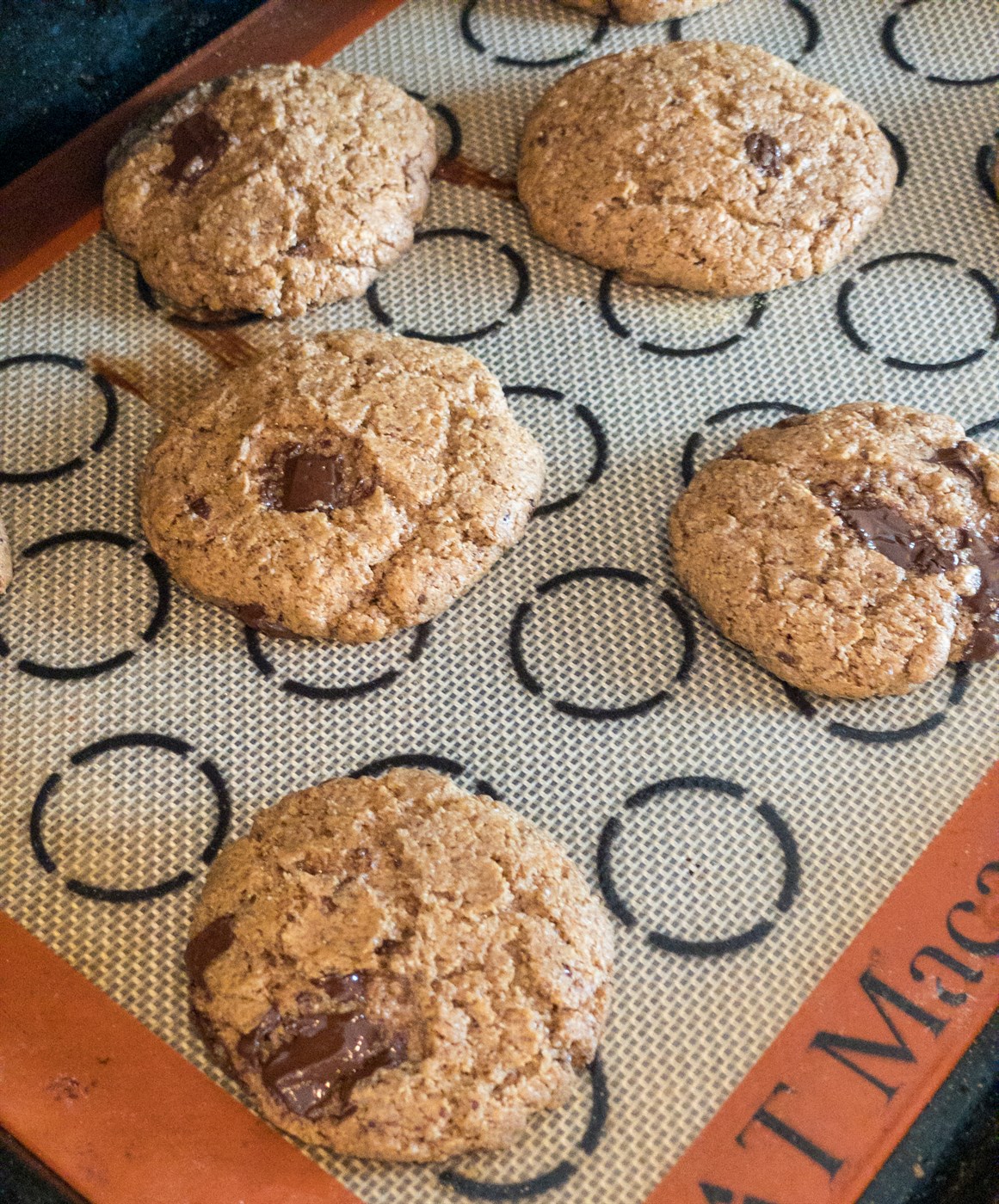 Ef þið viljið gera smákökurnar enn flottari er hægt að geyma helminginn af súkkulaðibitunum og setja þá ofan á smákökuna eftir að hún er mótuð.