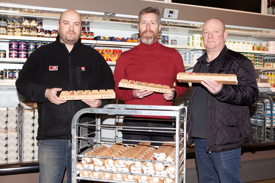Pakkningar eggjanna eru nokkuð óvenjulegar, þríhyrndar og rúma sjö egg. Eggin eru nú komin í sölu í Fjarðakaupum.