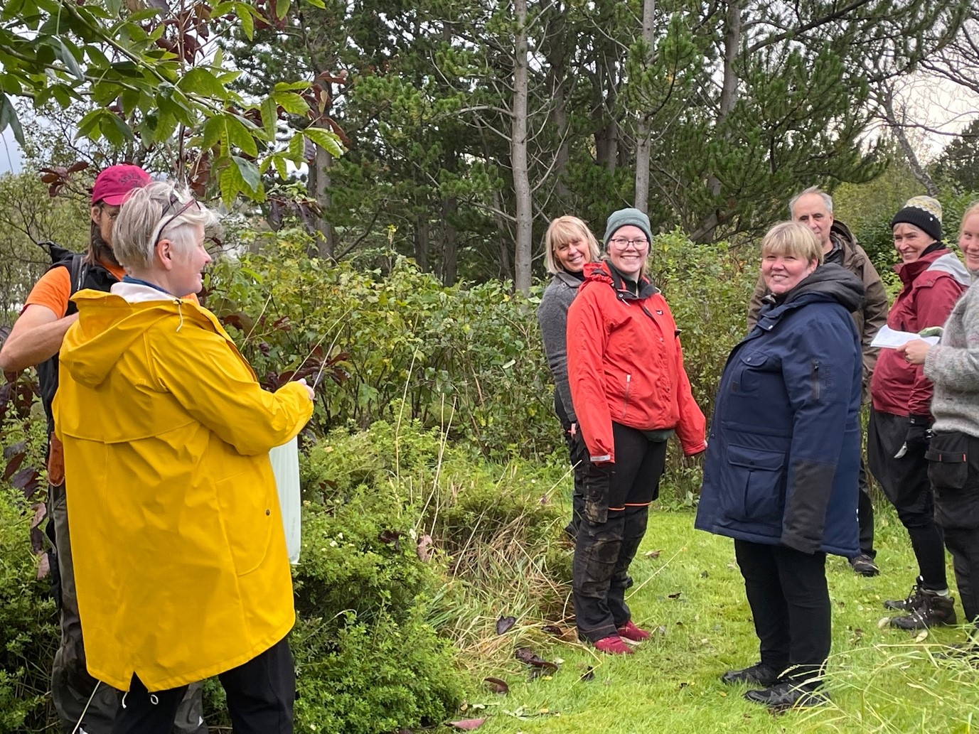 Garð- og skógarplöntubrautin við plöntugreiningar og fræsöfnun á Reykjum.