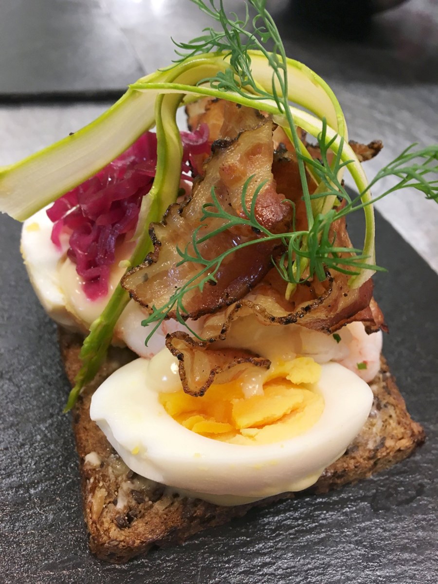 Linsoðið egg, íslensk rækja og heimalagað majónes