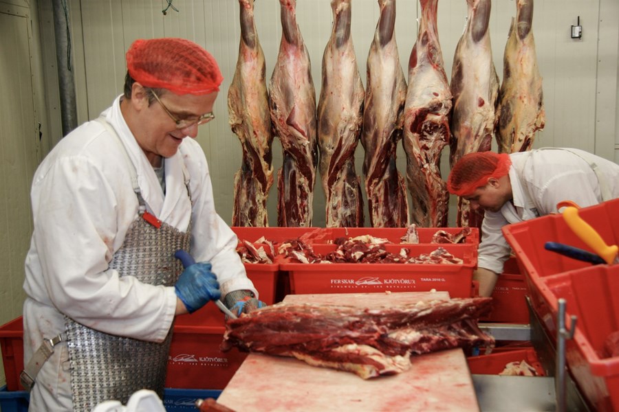 Samkvæmt nýlegum gögnum Hagstofu Íslands var heildarkjötframleiðsla nú í apríl átta prósent minni en í apríl á síðasta ári.