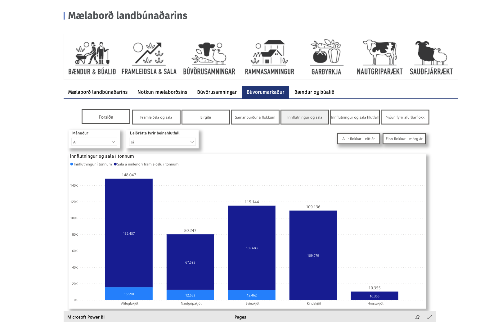 „Mælaborð landbúnaðarins er nauðsynlegt verkfæri til að tryggja yfirsýn við framkvæmd landbúnaðarstefnunnar á hverjum tíma. Opnun mælaborðsins í dag markar því tímamót því með því eru stjórnvöld að eiga frumkvæði að því að birta opinberlega þessar mikilvægu upplýsingar þannig að þær séu aðgengilegar öllum. Auka þannig gagnsæi en um leið yfirsýn yfir framleiðslu, sölu og birgðir í landinu til hagsbóta fyrir alla þá sem koma að íslenskum landbúnaði. Um leið stuðla að því að umræða um landbúnað byggi á rauntölum. Næsta skref verður að þróa og styrkja mælaborðið enn frekar,“ sagði Kristján Þór Júlíusson.