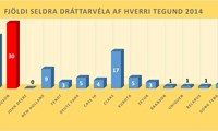 Þór er í fjórða sætinu og seldi 5 Kubota og 5 Deutz Fahr dráttarvélar. Var Þór því samanlagt með 9,5% hlutdeild á síðasta ári en var með 14% markaðshlutdeild árið 2013.