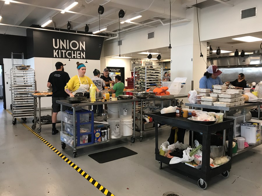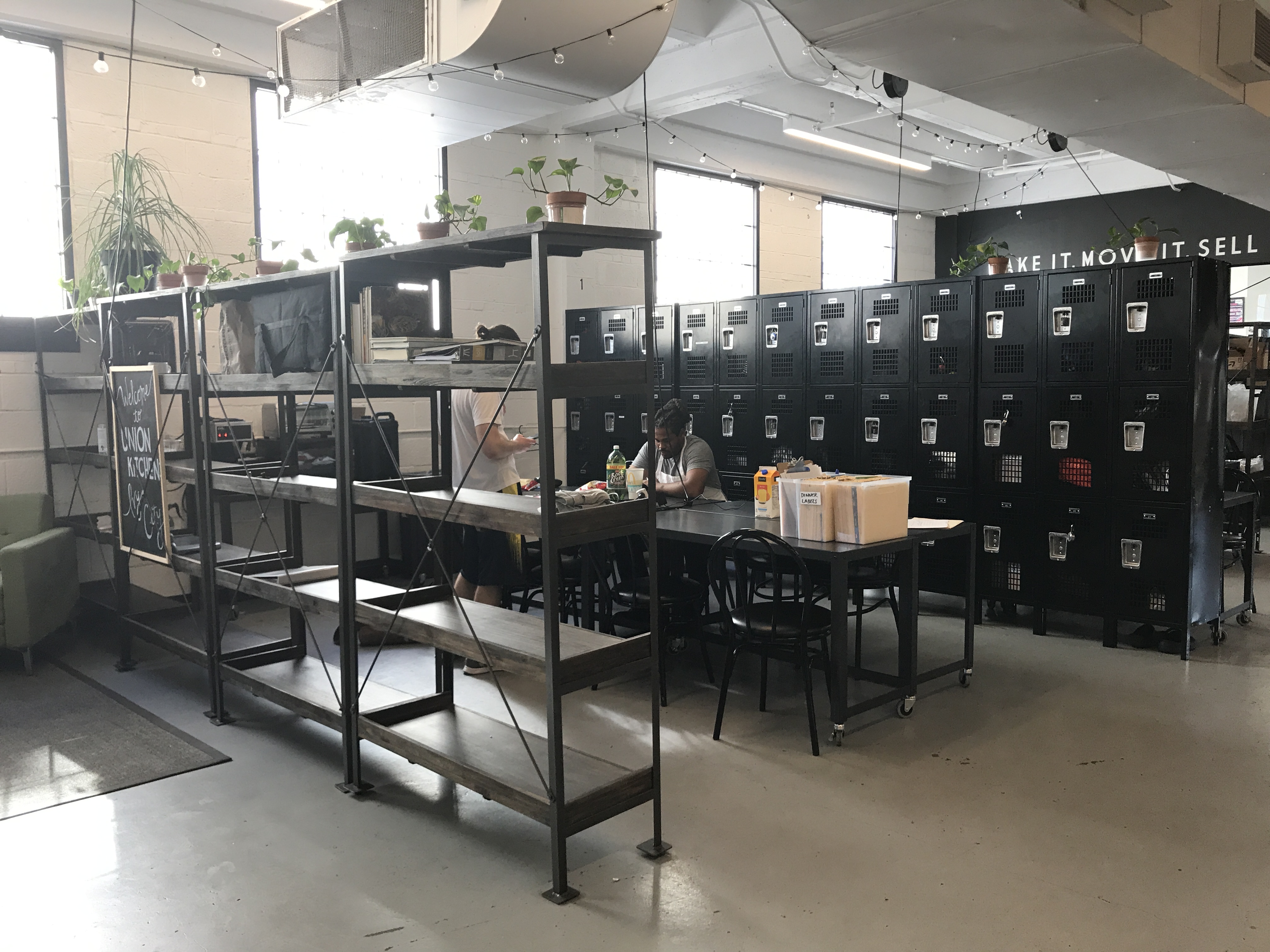 Mikilvægt er að hægt sé að geyma matvæli í tilraunaeldhúsum á milli þess sem unnið er, með þurrlager, kæli og frysti. Frá Union Kitchen í Washington.