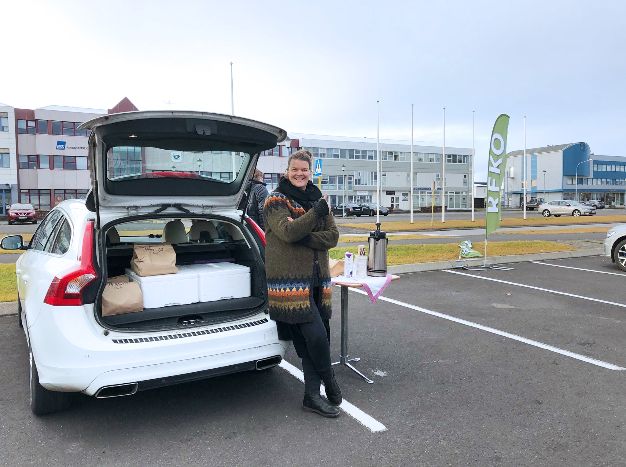 REKO Reykjavík – og áttu neytendur stefnumót við framleiðendurna á bílaplani Krónunnar á Akranesi annars vegar og á bílaplani Krónunnar í Lindum Kópavogs hins vegar. Meðlimir í þessum hópum sem voru mættir á afhendingarstaðinn höfðu þá þegar lagt inn pantanir hjá framleiðendunum og greitt fyrir með rafrænum hætti.