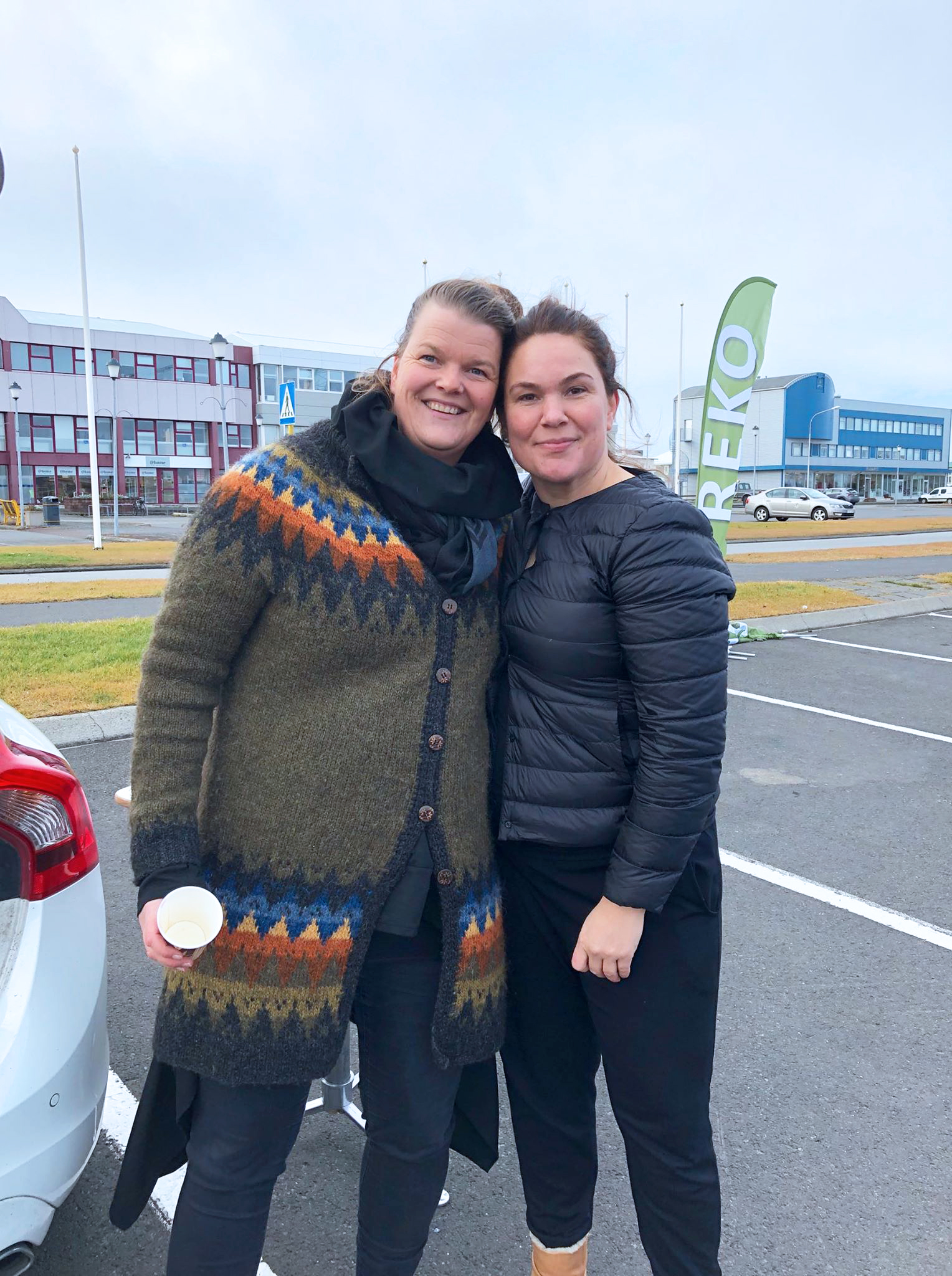 Arnheiður Hjörleifsdóttir, stjórnandi REKO Reykjavík, og Hlédís Sveinsdóttir, stjórnandi REKO Vesturland, við Krónuna á Akranesi.