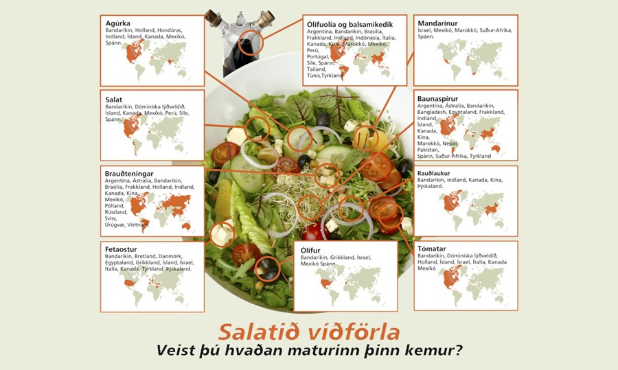 Sem neytendur eigum við oft erfitt með að átta okkur á uppruna matarins sem við borðum. Einfalt salat í skál kemur víðar að en marga grunar.