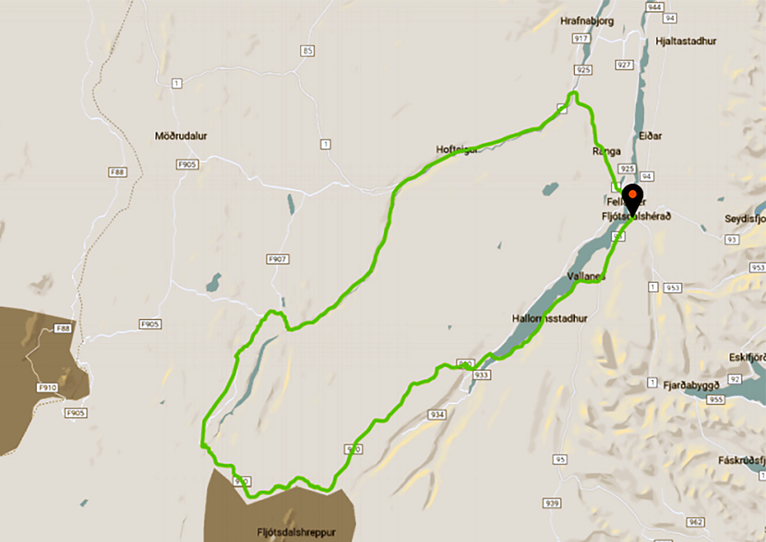Leiðin sem um ræðir er frá Egilsstöðum inn með Lagarfljóti og í gegnum Hallormsstaðaskóg, hjá Hengifossi og um góðan veg upp á Fljótsdalsheiði, hjá Laugafelli og um Vesturöræfin.