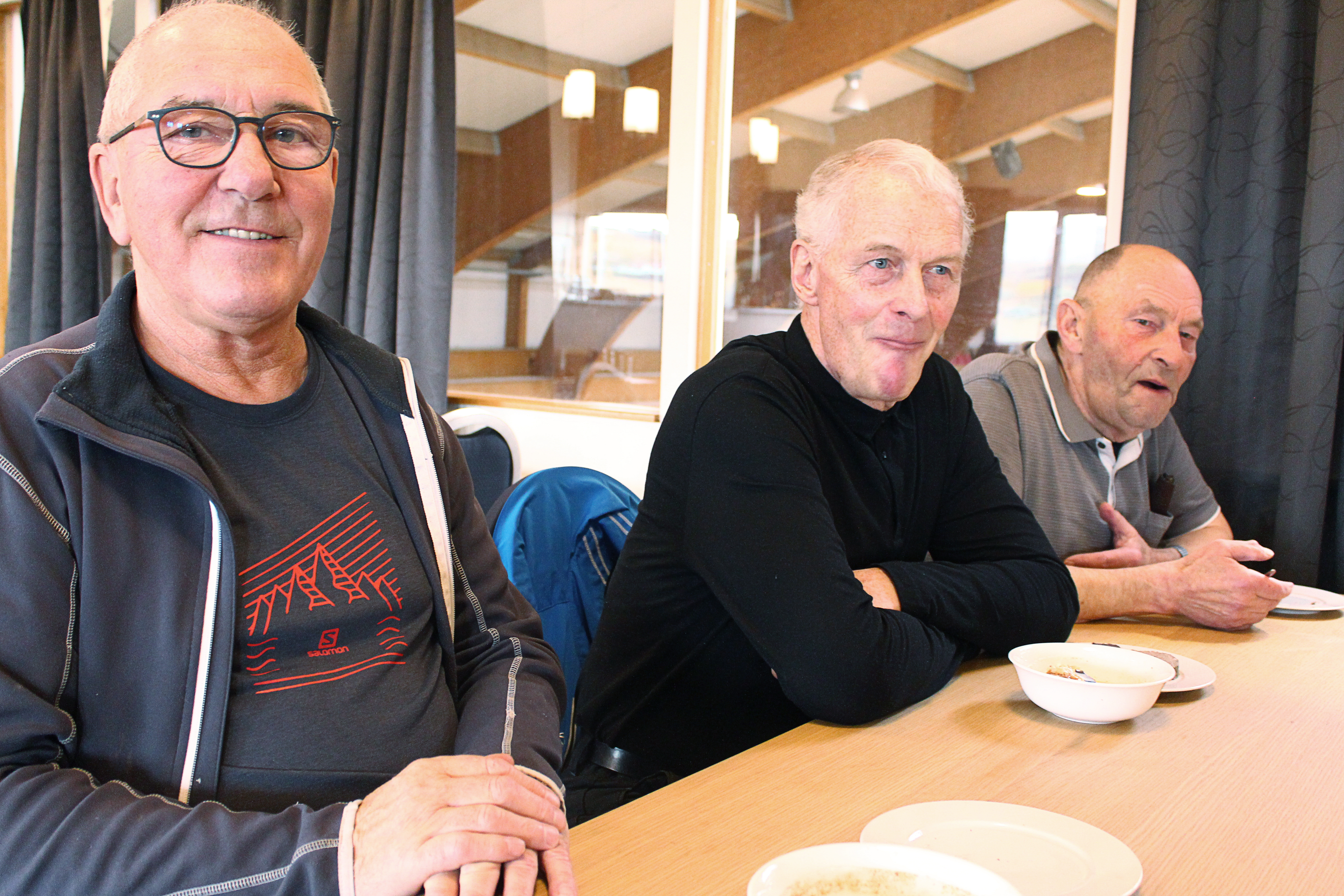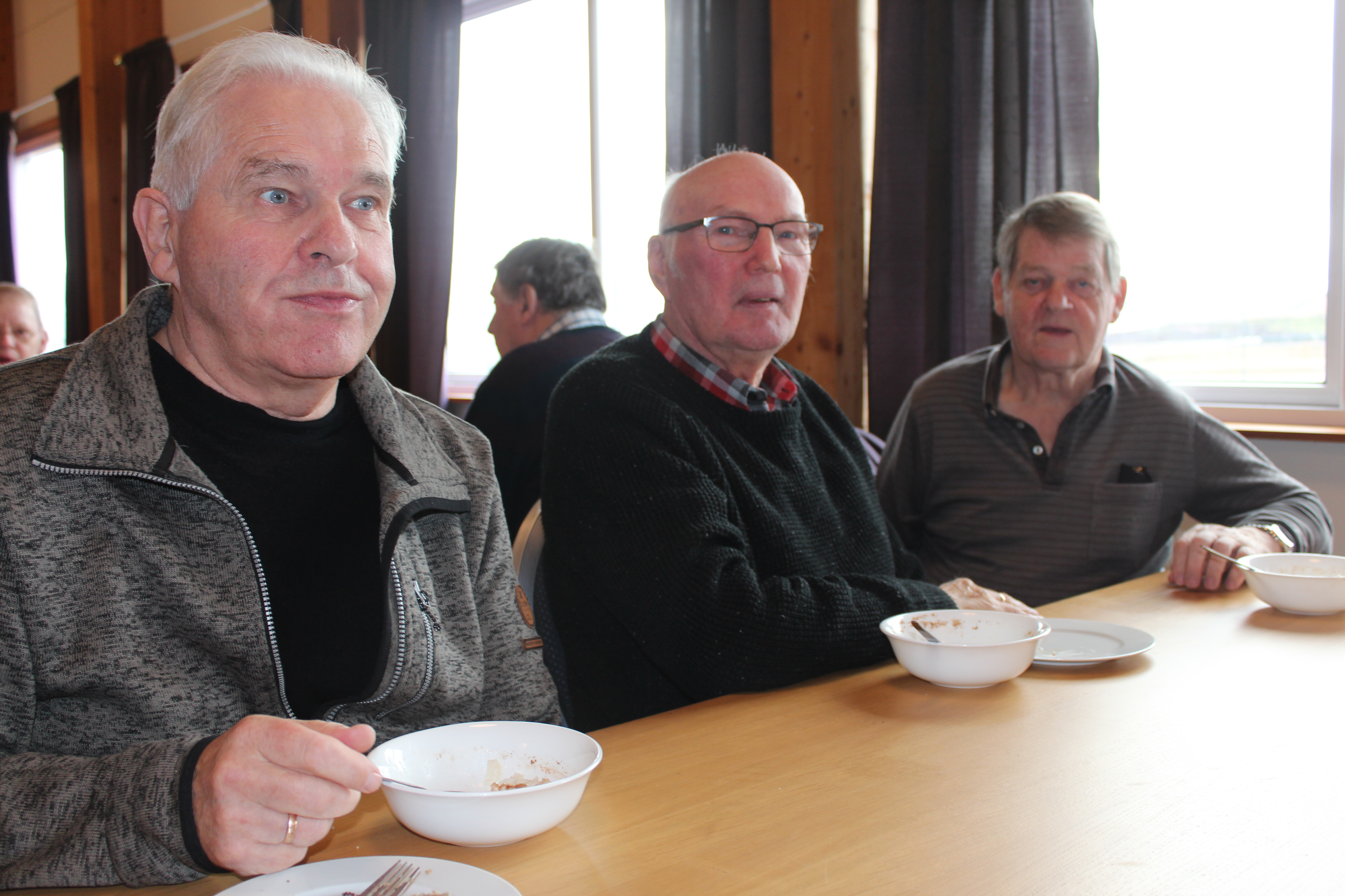Sigrún Aðalsteinsdóttir, Garðar Lárusson, heiðursfélagi Léttis, og Kjartan Helgason gerðu grautnum góð skil.