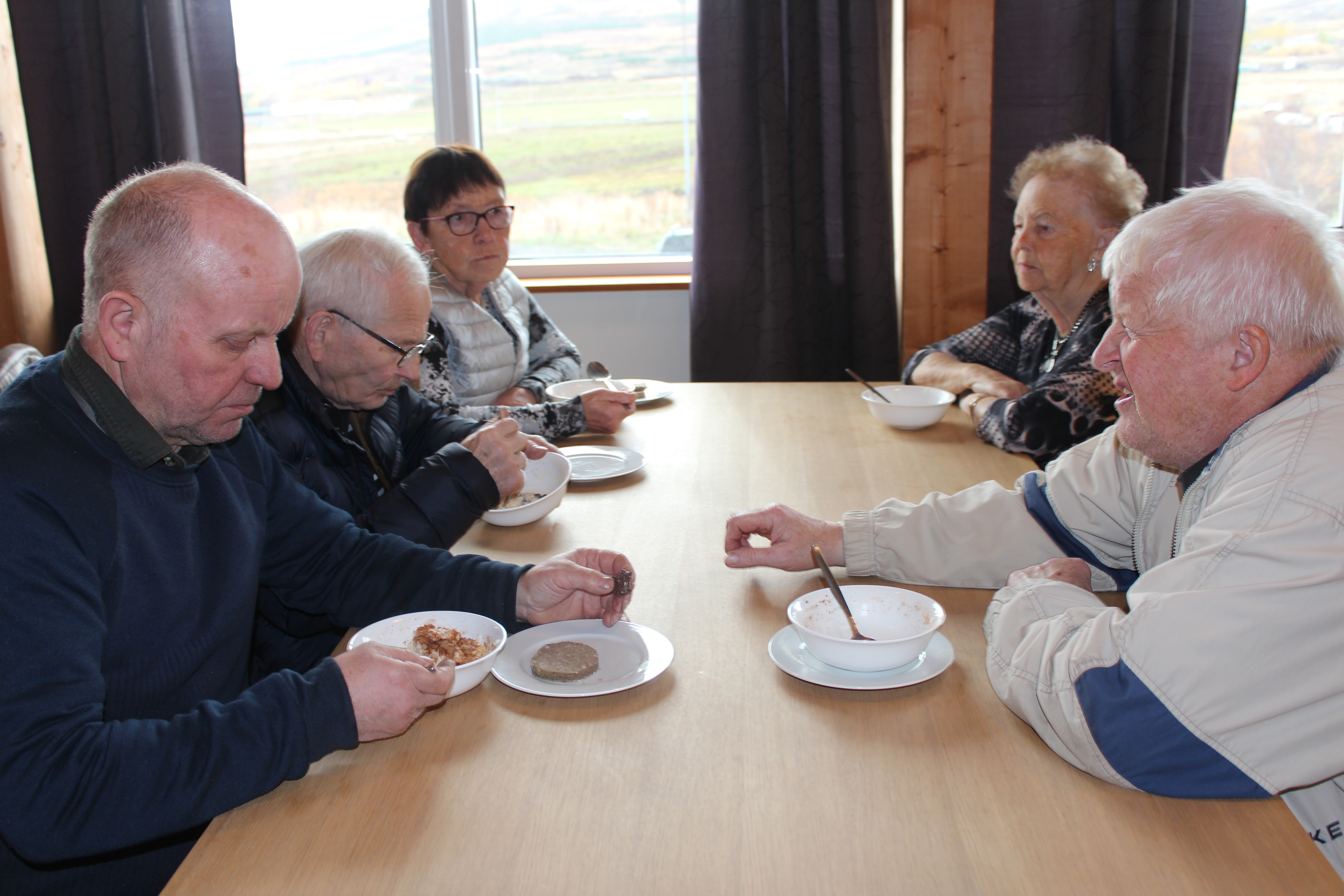 Að þessu sinni var sem fyrr segir boðið upp á mjólkurgraut og slátur, svona í tilefni af því að sláturtíð hefur staðið yfir síðustu viku. Hafdís Gylfadóttir og Guðlaug Reynisdóttir, báðar silfurmerkishafar Léttismanna, stóðu í ströngu við grautargerðina, eru konurnar á bak við tjöldin. Næst segir Sigfús að til standi að bjóða heldri manna-hópnum upp á kráarkvöld og verður það öðru hvorum megin við áramótin næstu.