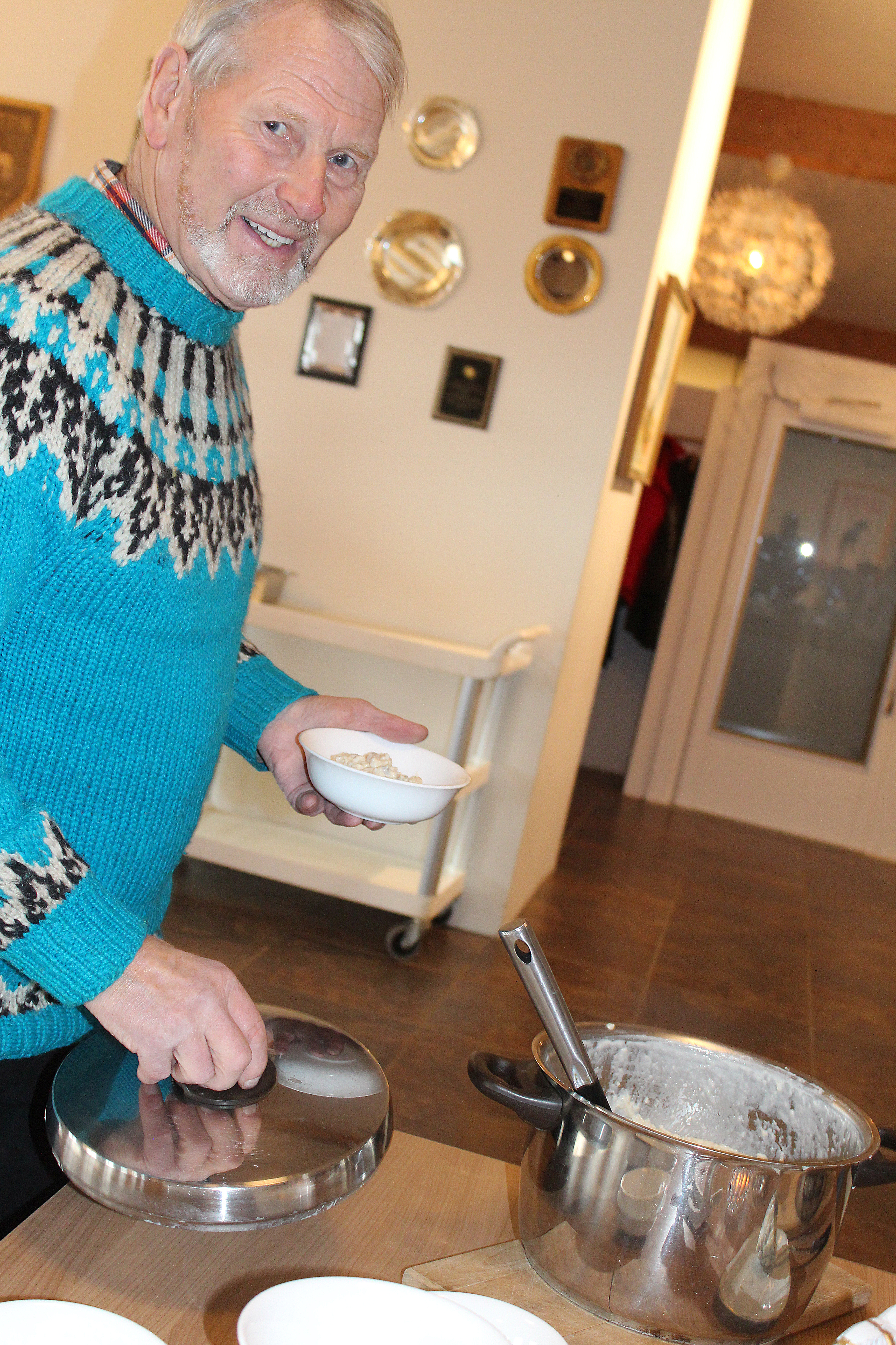 Félagið hefur þann sið að bjóða eldri félagsmönnum, 65 ára og eldri, þrisvar til fjórum sinnum á ári í gleðskap af einhverju tagi. Nú rétt um daginn var hópnum boðið í Skeifuna, félagsheimili Léttis í Reiðhöllinni, og þar var í boði mjólkurgrautur og slátur eins og hver gat í sig látið.