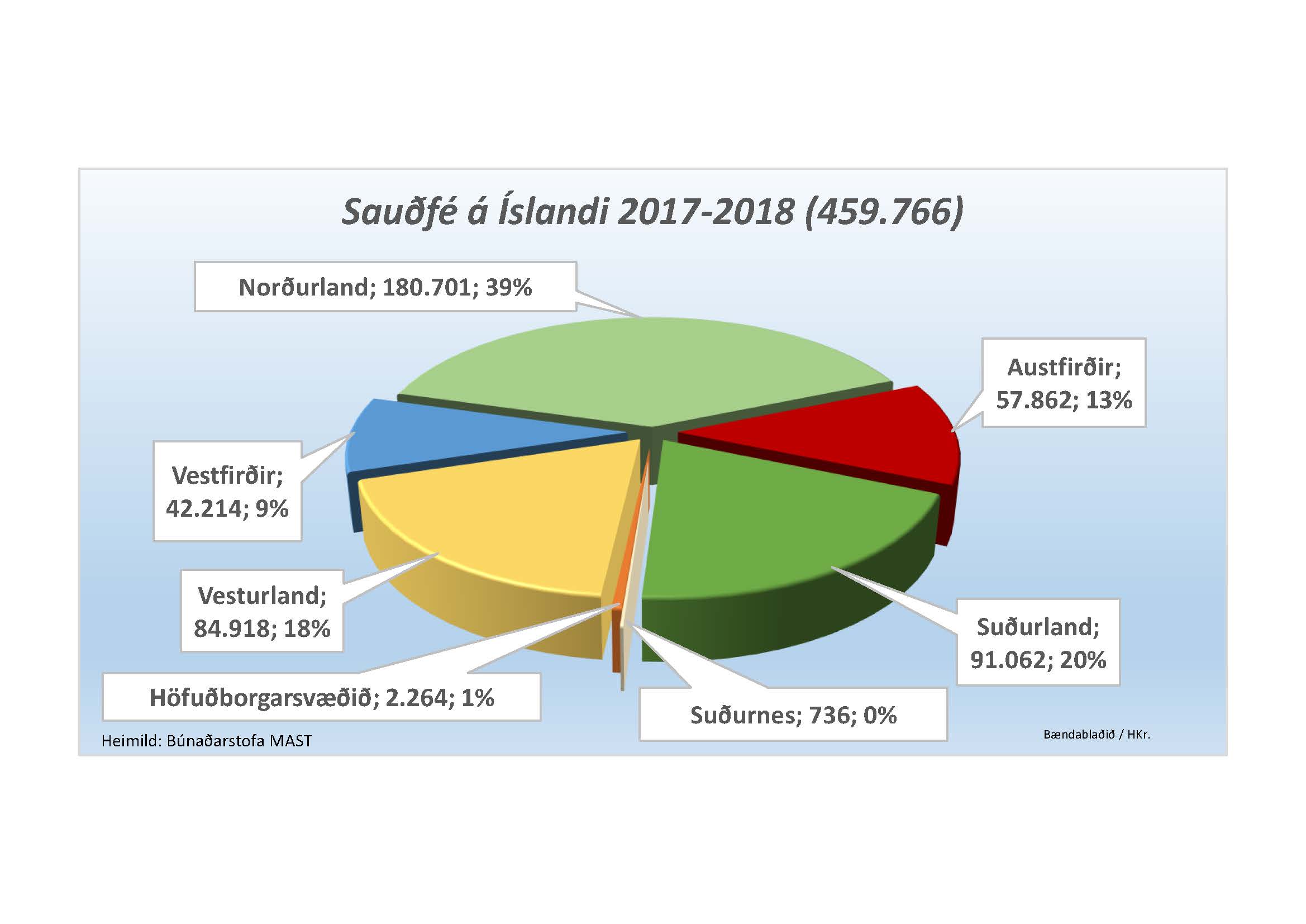 Töluvert aðra sögu er að segja af sauðfjárstofni landsmanna. Á árinu 1981 voru 794.097 vetrarfóðraðar kindur í landinu, eða um 3,5 sauðkindur á hvern einasta landsmann. Samkvæmt nýjustu tölum var vetrarfóðrað sauðfé komið niður í 459.766 um síðustu áramót en landsmönnum hafði fjölgað um 121.383 frá 1981. Því eru ekki lengur 3,5 sauðkindur á fóðrum á hvern íbúa eins og áður heldur einungis 1,3 kindur. Hefur því fækkað gríðarlega í stofninum á undanförnum áratugum, eða um hartnær helming að höfðatölu fjárins og enn meira sem hlutfall af íbúafjölda. Frá 1995 hefur sauðfé aldrei farið yfir 500 þúsund vetrarfóðraðar skepnur.