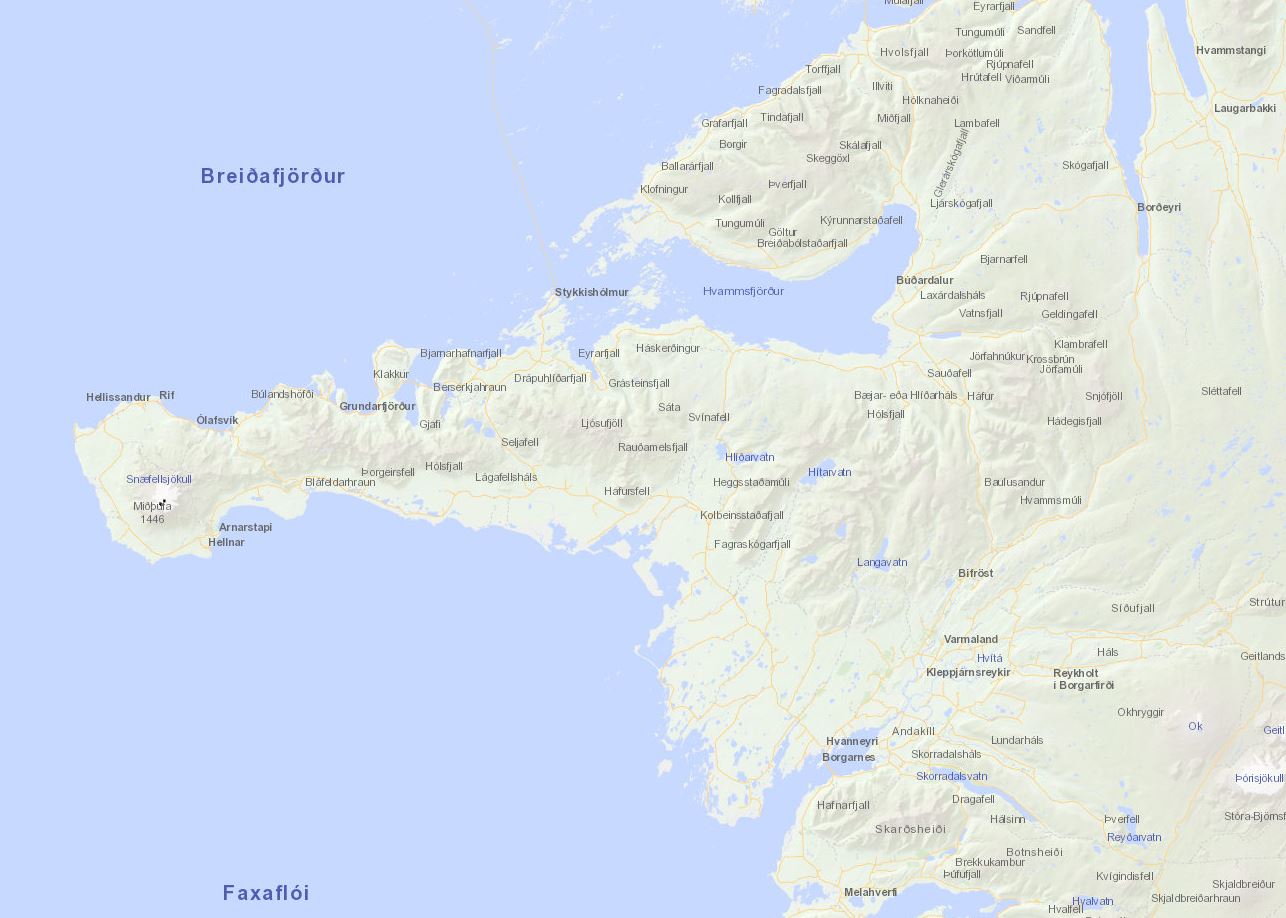 Staðsett í sveit:  Í Staðarsveit á sunnanverðu Snæfellsnesi.