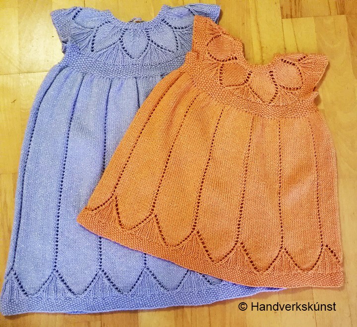 Þessir kjólar sem þið fáið uppskrift af að þessu sinni eru prjónaðir úr Sera-garni með glitþræði og eru mjög fallegir.
