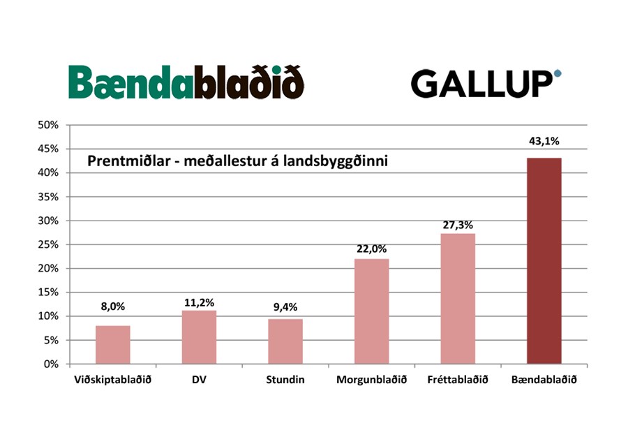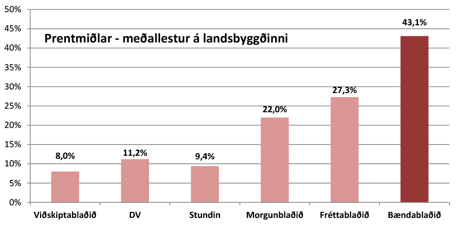 Nýjar lestrartölur á prentmiðlum sýna að staða Bændablaðsins er sterk á blaðamarkaði. Á landsbyggðinni ber Bændablaðið höfuð og herðar yfir aðra prentmiðla og yfir landið allt er Bændablaðið í öðru sæti á eftir Fréttablaðinu í lestri.