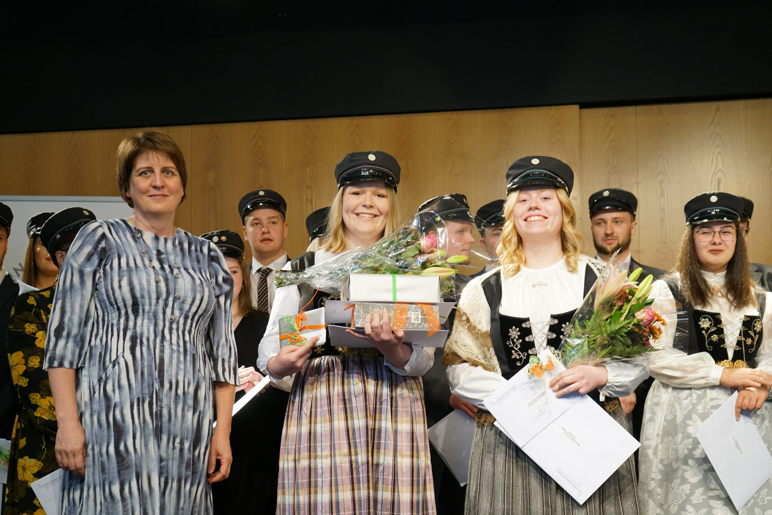 Ragnheiður I. Þórarinsdóttir rektor ásamt Köru Nótt Möller og Mörtu Guðlaugu Svavarsdóttur, sem stóðu jafnar og efstar á búfræðiprófi.