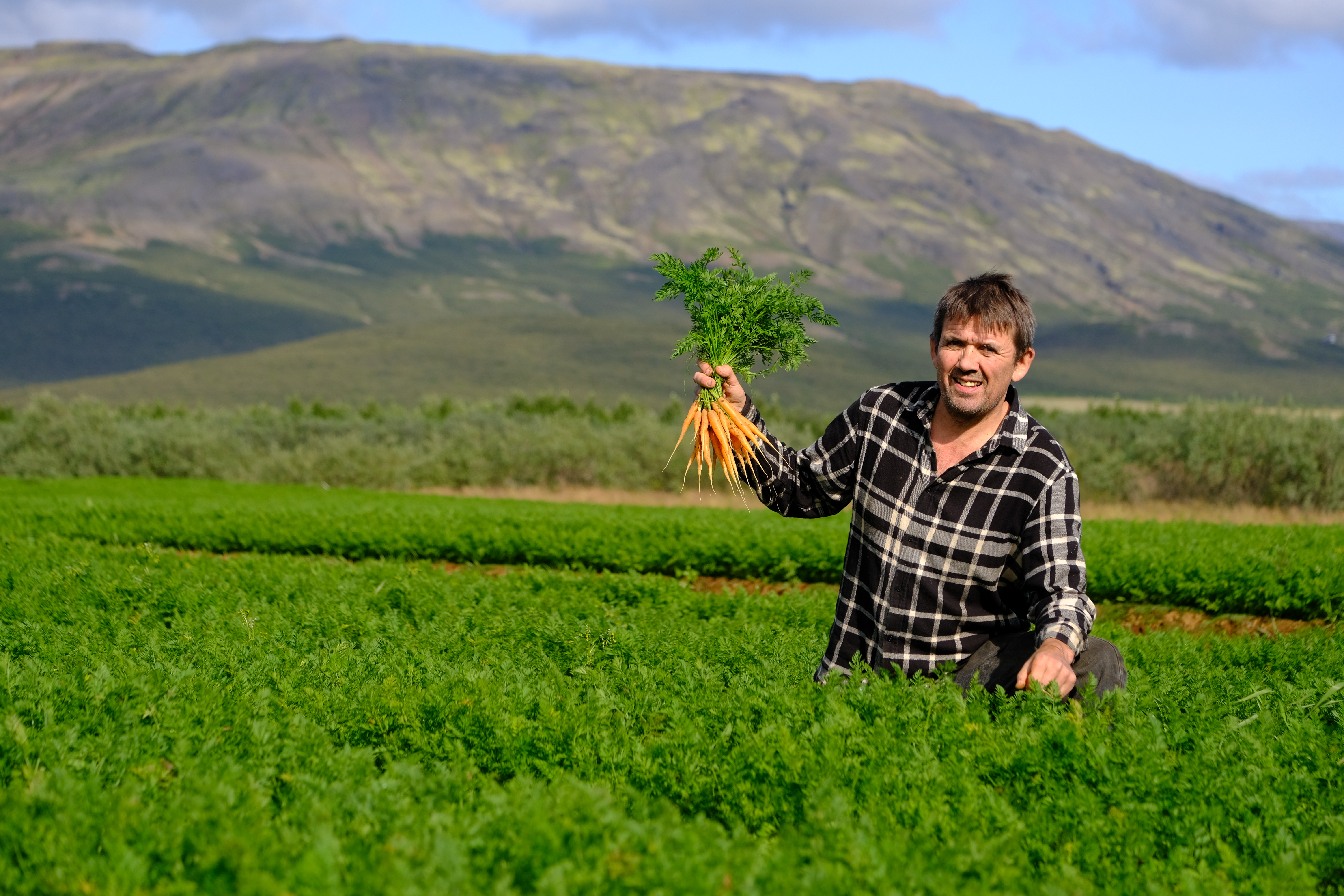 Við ræktum bara í svokölluðum mómoldarjarðveg. Ég hef prófað að rækta gulrætur í sendnum jarðvegi, en mér finnst geymsluþolið verða minna. Íslendingar vilja íslenskar gulrætur og við finnum að það er mikil eftirvænting núna eftir því að þær berist í búðir. Ég var að taka stöðuna á þessu hjá mér í gær og ég hugsa að ég sendi frá mér fyrstu uppskeru í kringum 5. september.“