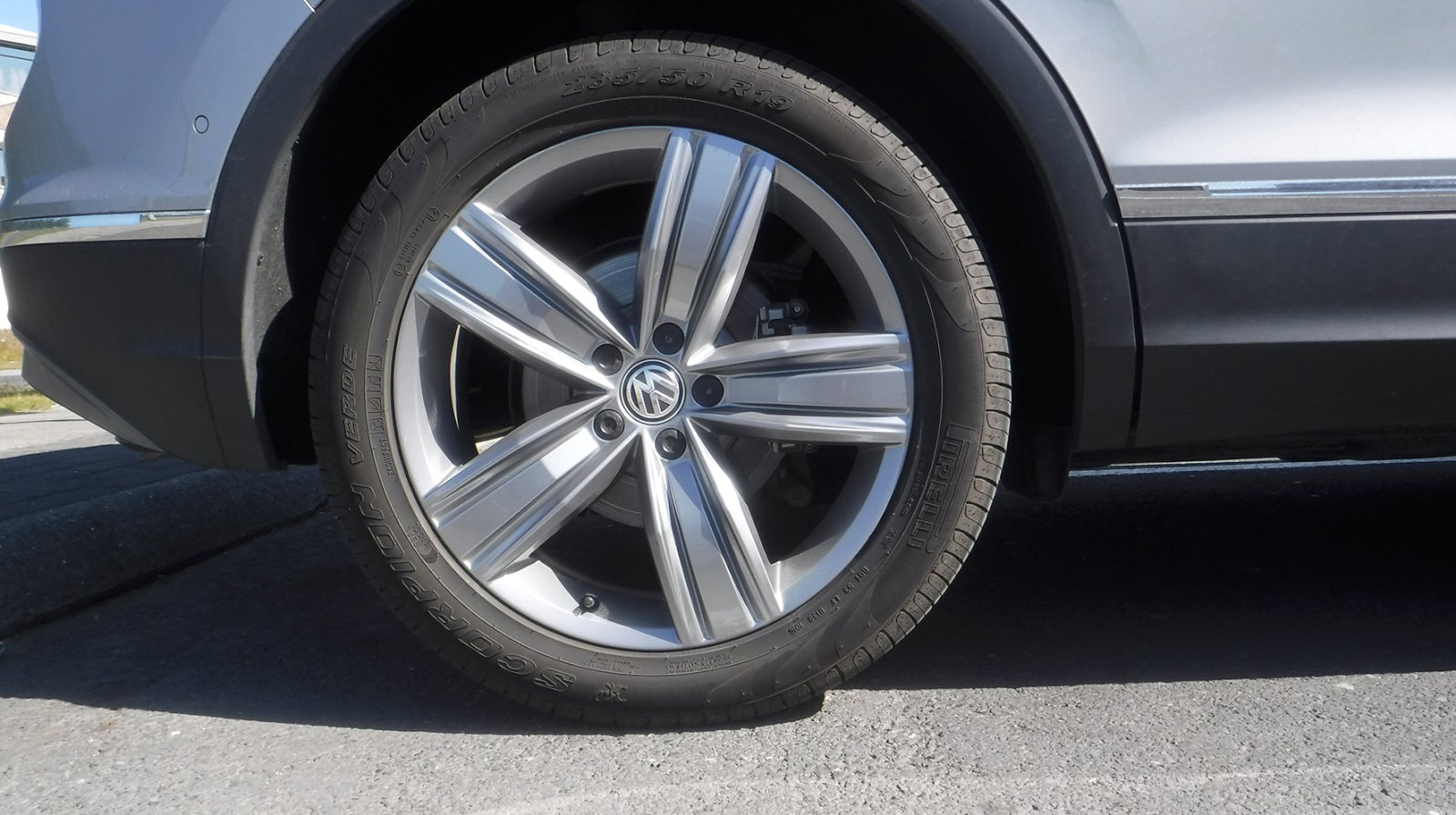 Eflaust hafa þeir sem lesa þessa pistla mína rekið augun í að ég er lítið hrifinn af því að stækka felgur undir nýjum bílum, ég vil hafa felgurnar eins litlar og hægt er. Tiguan er hægt að fá á 17 tommu felgum, en bíllinn sem ég prófaði var á 19 tommu felgum sem gefur skemmtilegt grip á góðu malbiki, en virkar eins og að bíllinn sé grjótharður á malarvegum og við hverja grjótnibbu eru hliðar dekkjanna í hættu.
