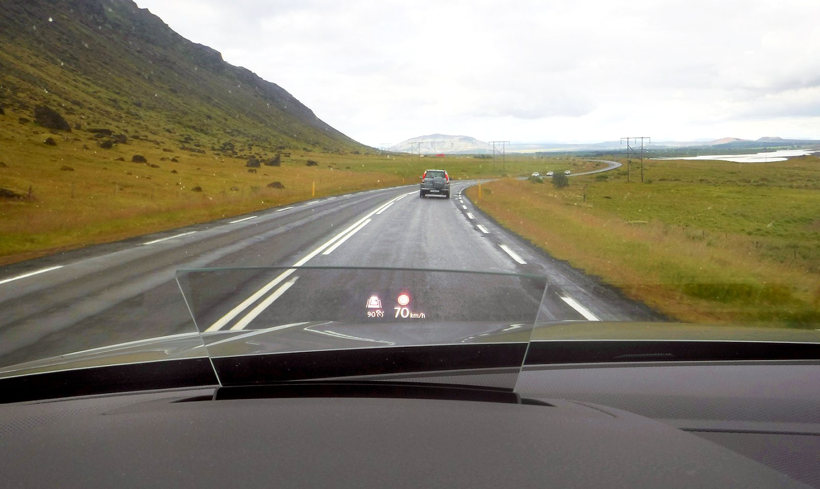 Hraðastillirinn (cruse control) er útbúinn fjarlægðarskynjara í næsta bíl og sem dæmi hafði ég hraðastillinn stilltan á 90 km hraða og keyrði uppi bíl sem var á 70. Hraðastillirinn hægði sjálfkrafa á bílnum og svo vel vildi til að bíllinn á undan var að fara að beygja 90 gráðu beygju á sama stað og ég.