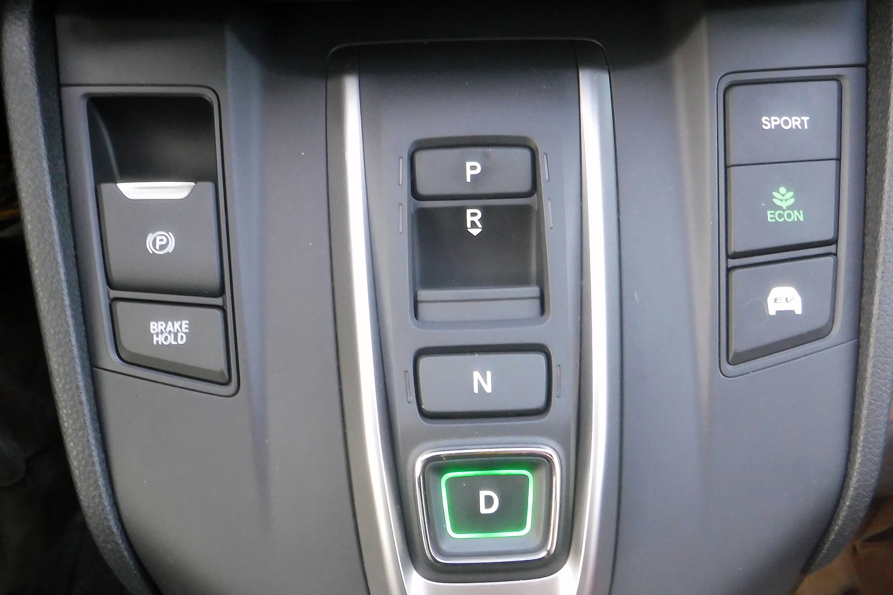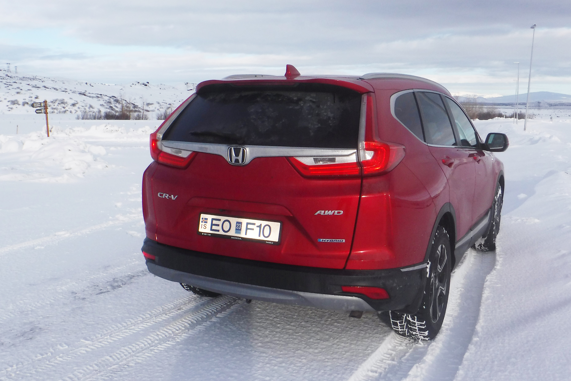 Fyrri árgerðirnar af Honda CR-V eru mjög sparsamir bílar á eldsneyti, bæði bensínbíllinn og dísilbíllinn, en þessi nýi bíll er með uppgefna eyðslu á hundraðið í blönduðum akstri 5,5 lítrar á hundraðið. Lítil eyðsla kemur til af rafmagnsvélinni sem vinnur með bensínvélinni, en rafmagnið hleðst inn á rafhlöðuna þegar ekið er í mjúkum áreynslulausum akstri og þegar bremsað er. Rafhlaðan er aftast í bílnum þar sem í flestum bílum er staðurinn fyrir varadekkið, en því miður er ekkert varadekk í bílnum og var það eini mínusinn sem ég fann að bílnum. Í prufuakstrinum, sem var tæpir 170 km, sagði aksturstölvan að ég hefði verið að eyða miðað við 100 km akstur ekki nema 6,9 lítrum þrátt fyrir snjó og hálku.