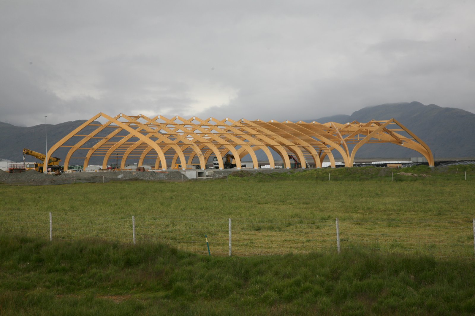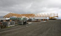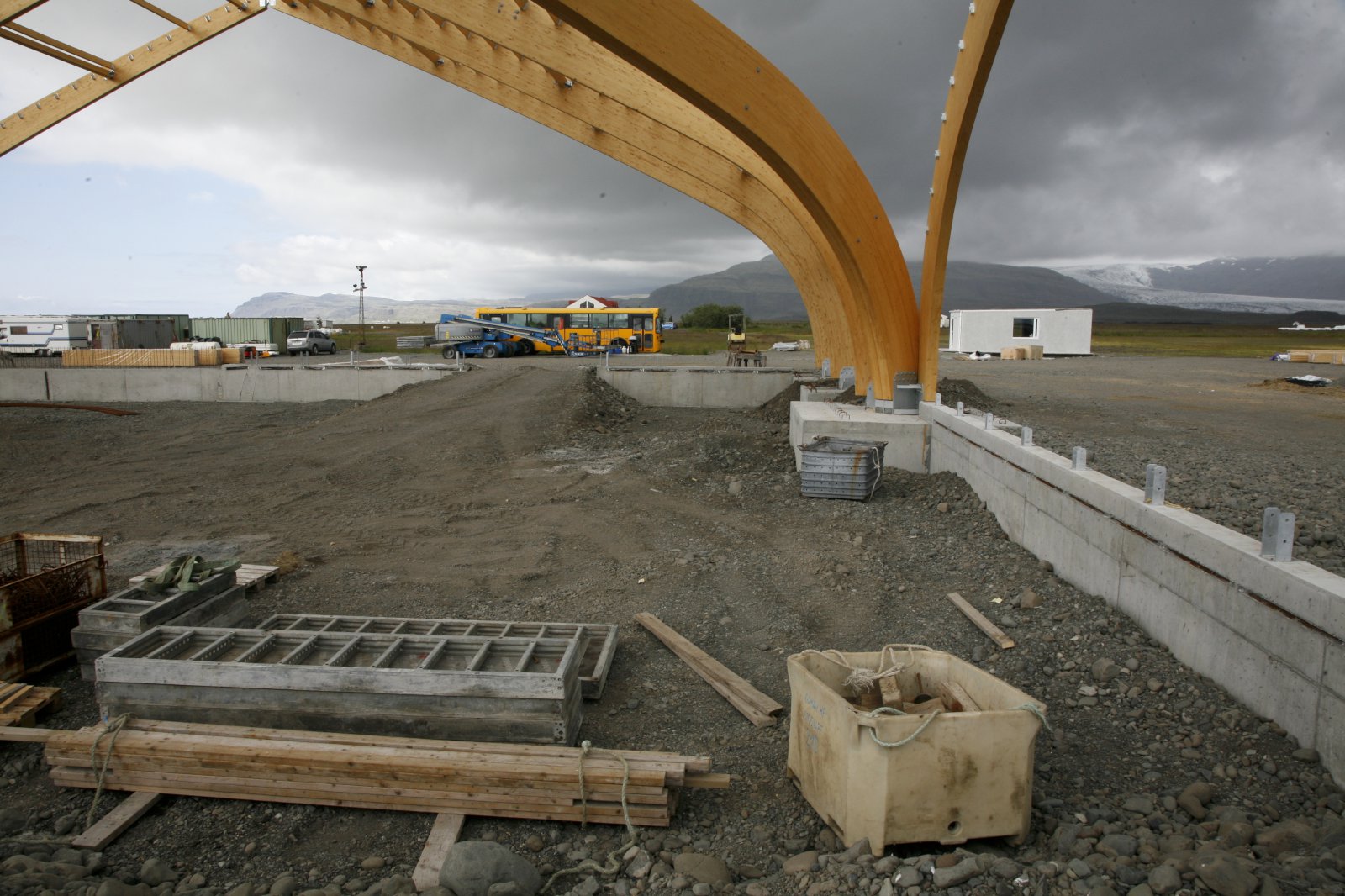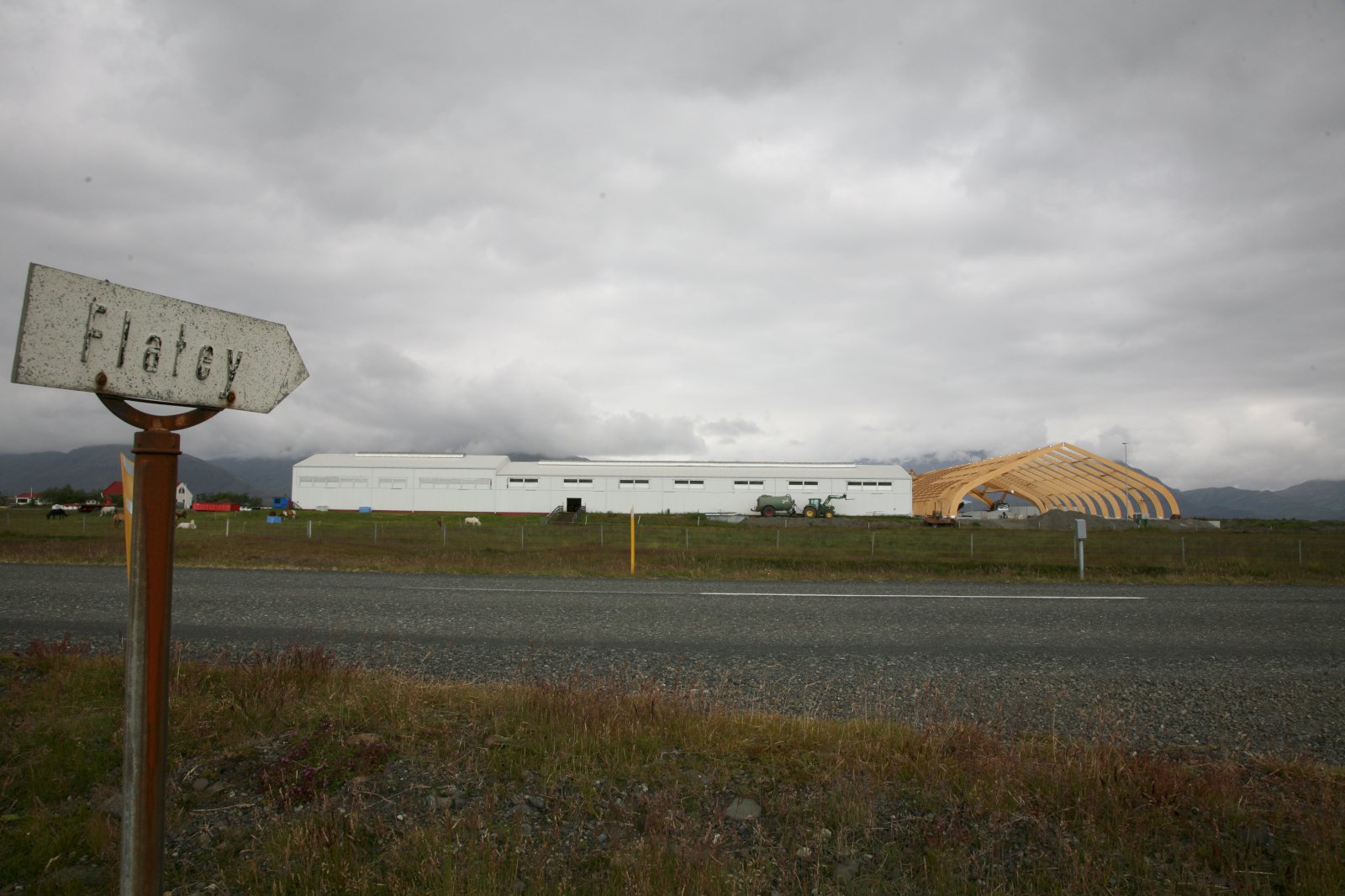 Á kúabúinu Flatey á Mýrum í Hornafirði rís eitt stærsta fjós landsins þessa dagana. Forsvarsmenn búsins, sem er í eigu Selbakka ehf., hyggjast tvöfalda mjólkurframleiðslu á Flateyjarbúinu en nú eru þar framleiddir um 900 þúsund lítrar á ársgrundvelli. Eftir stækkunina verður mögulegt að auka mjólkurframleiðsluna í tvær milljónir lítra á ári.