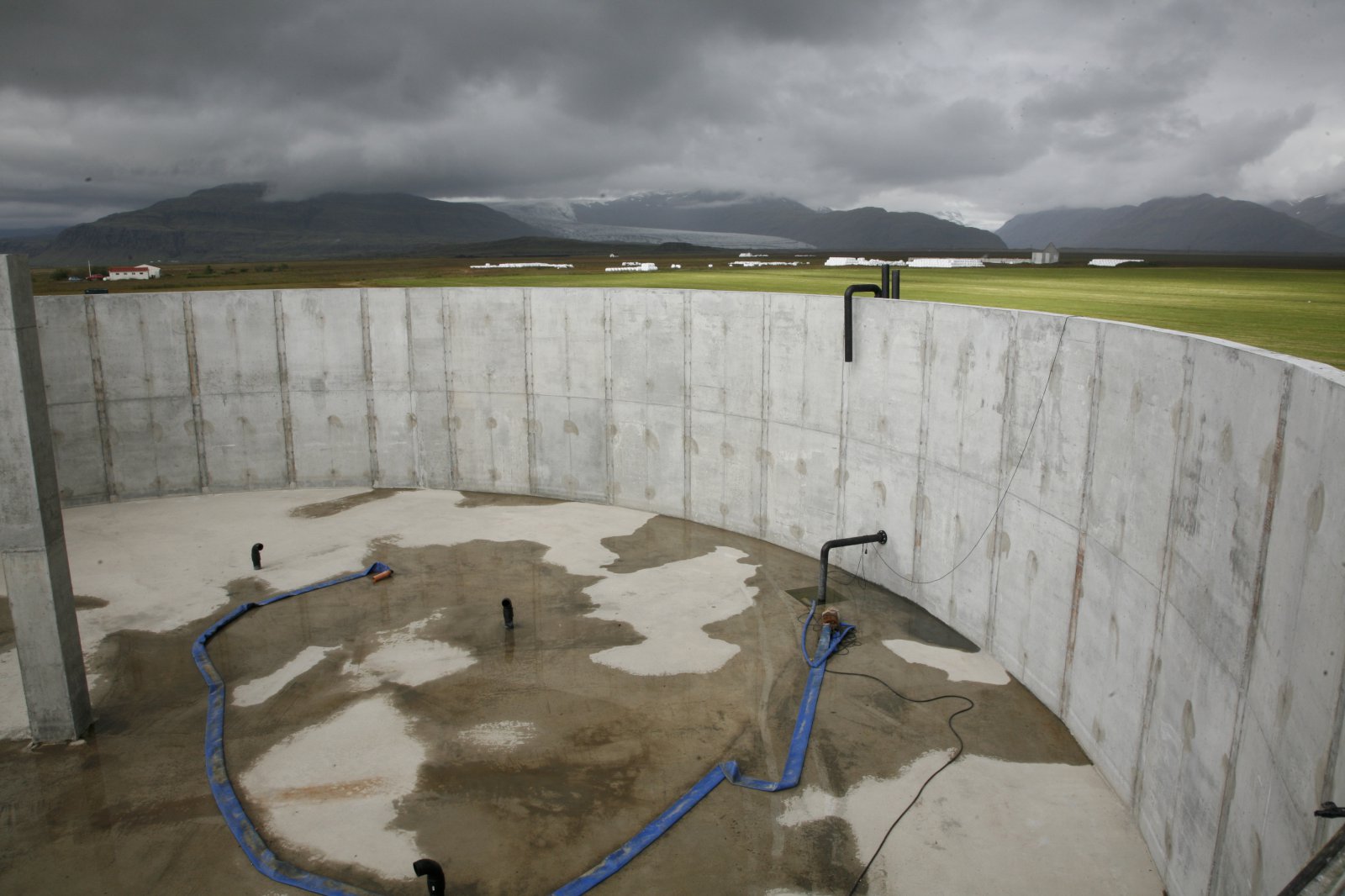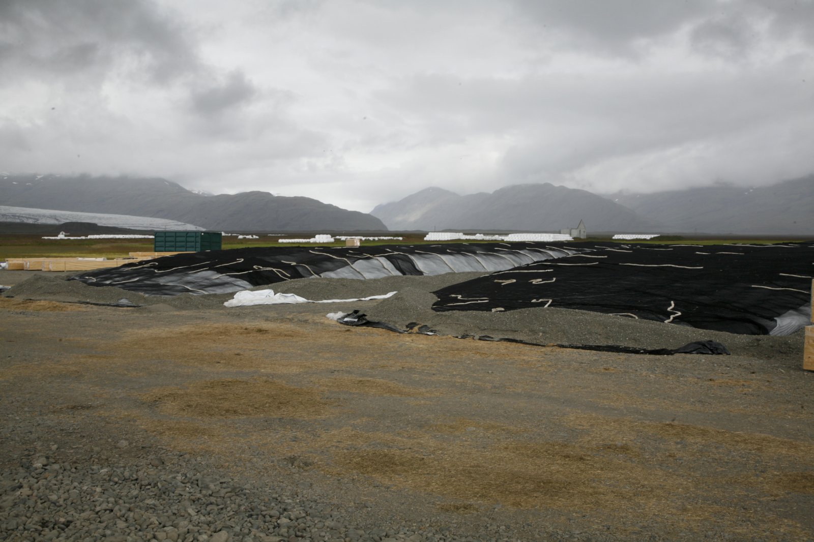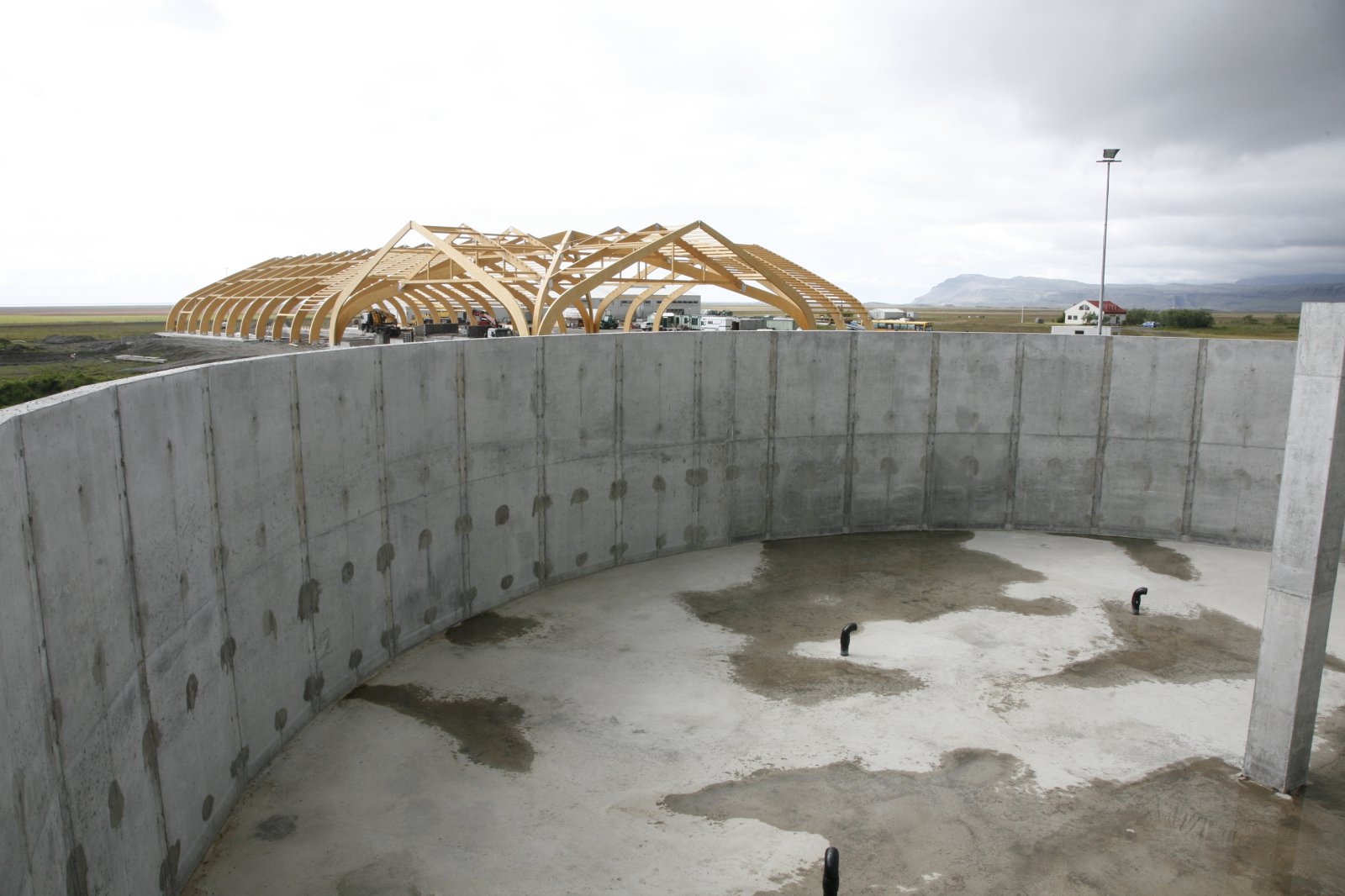 Ný haugþró var steypt í vor. Hún er engin smásmíði, 6 metrar á dýpt og 30 metrar í þvermál. „Það var nær engin jarðvinna undir henni. Bara ýtt ofan af og þá vorum við fljótlega komnir niður á möl,“ segir Friðrik.