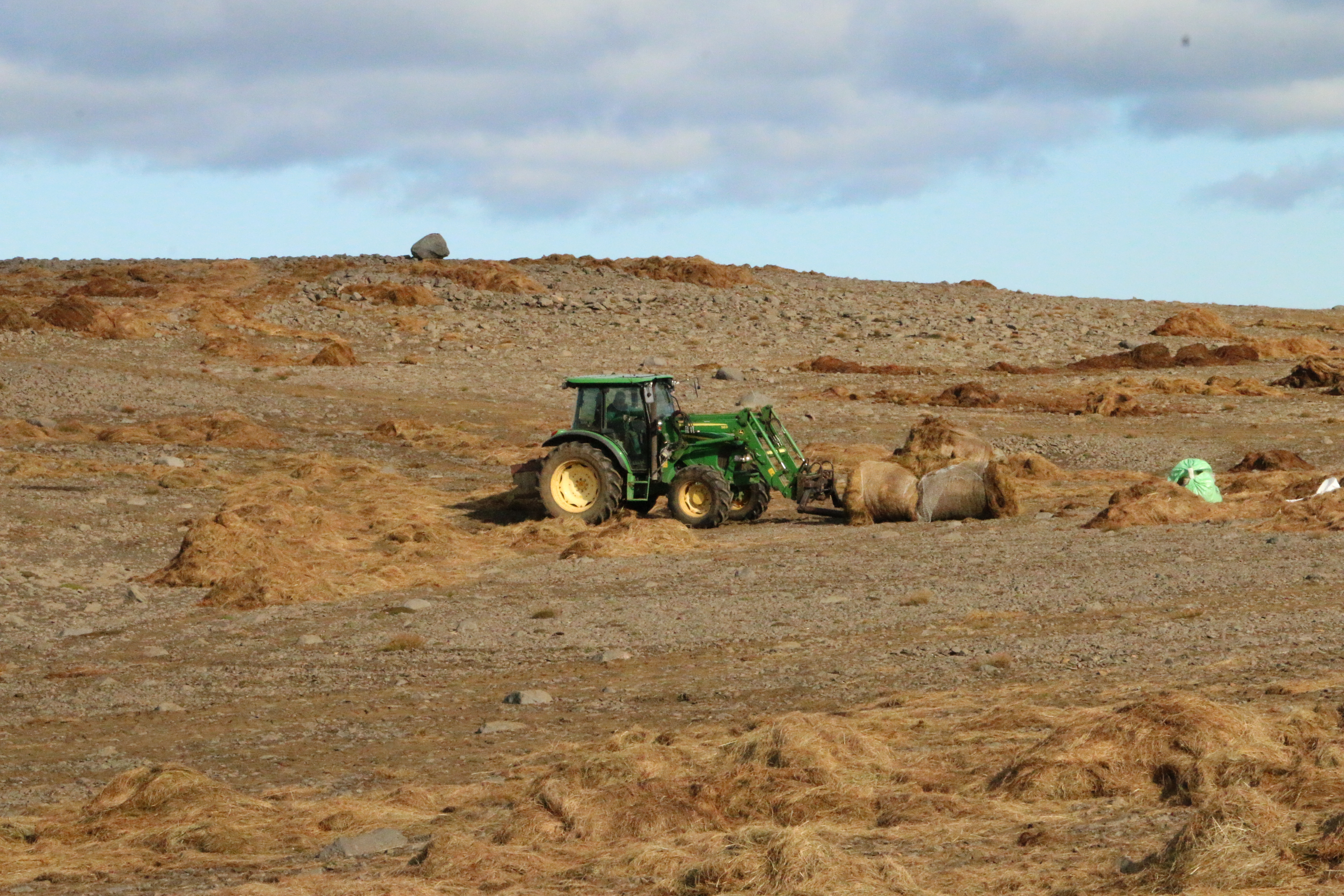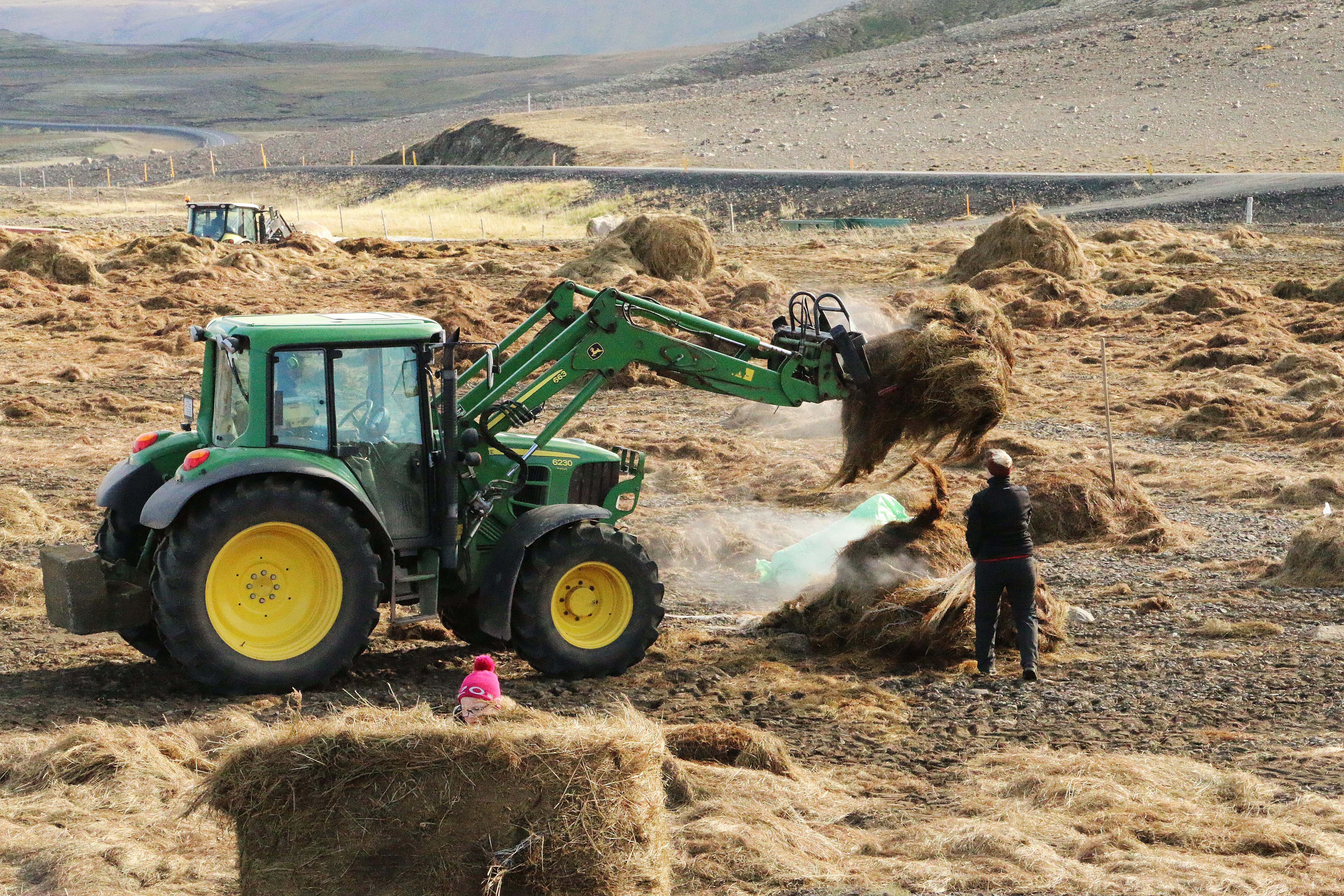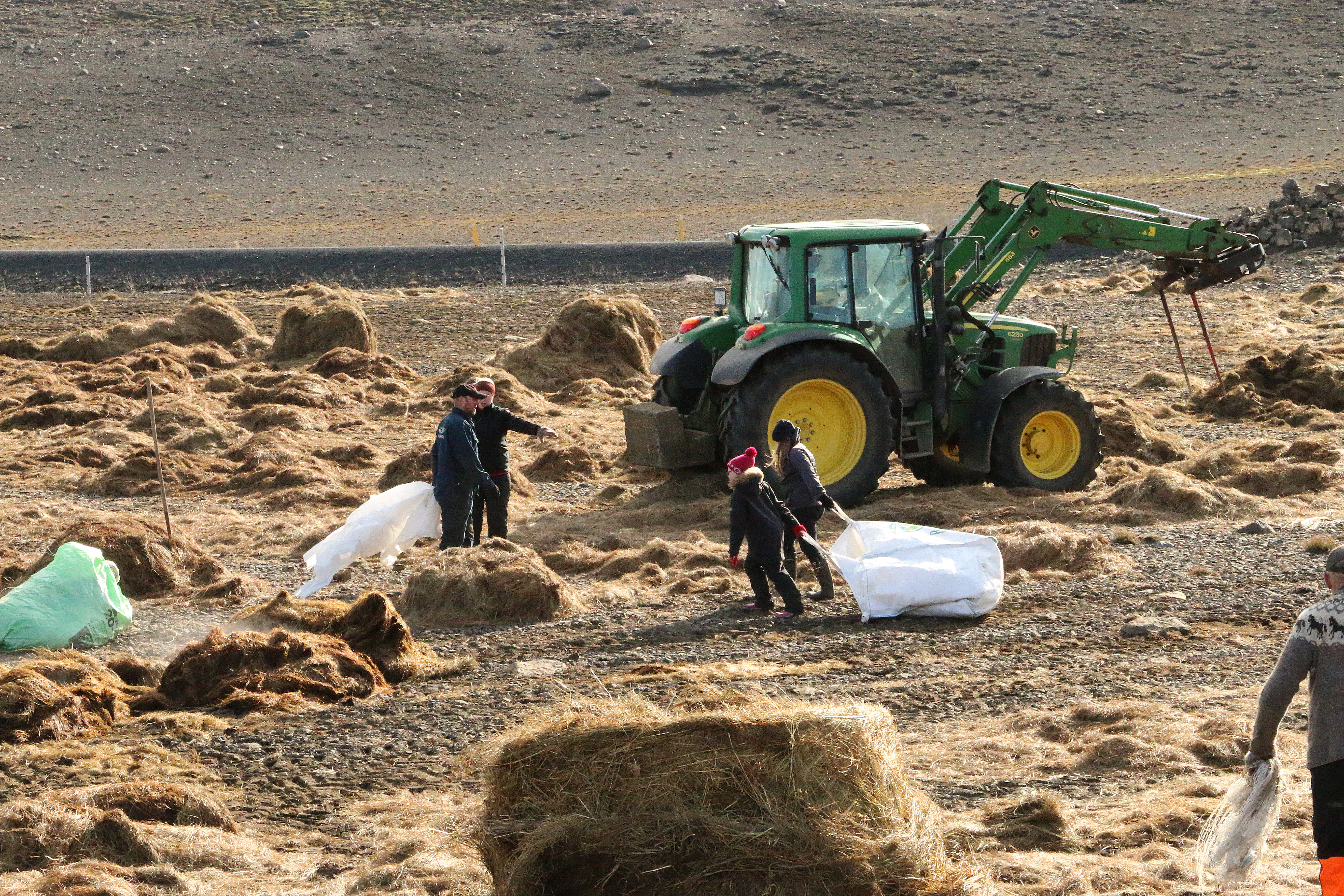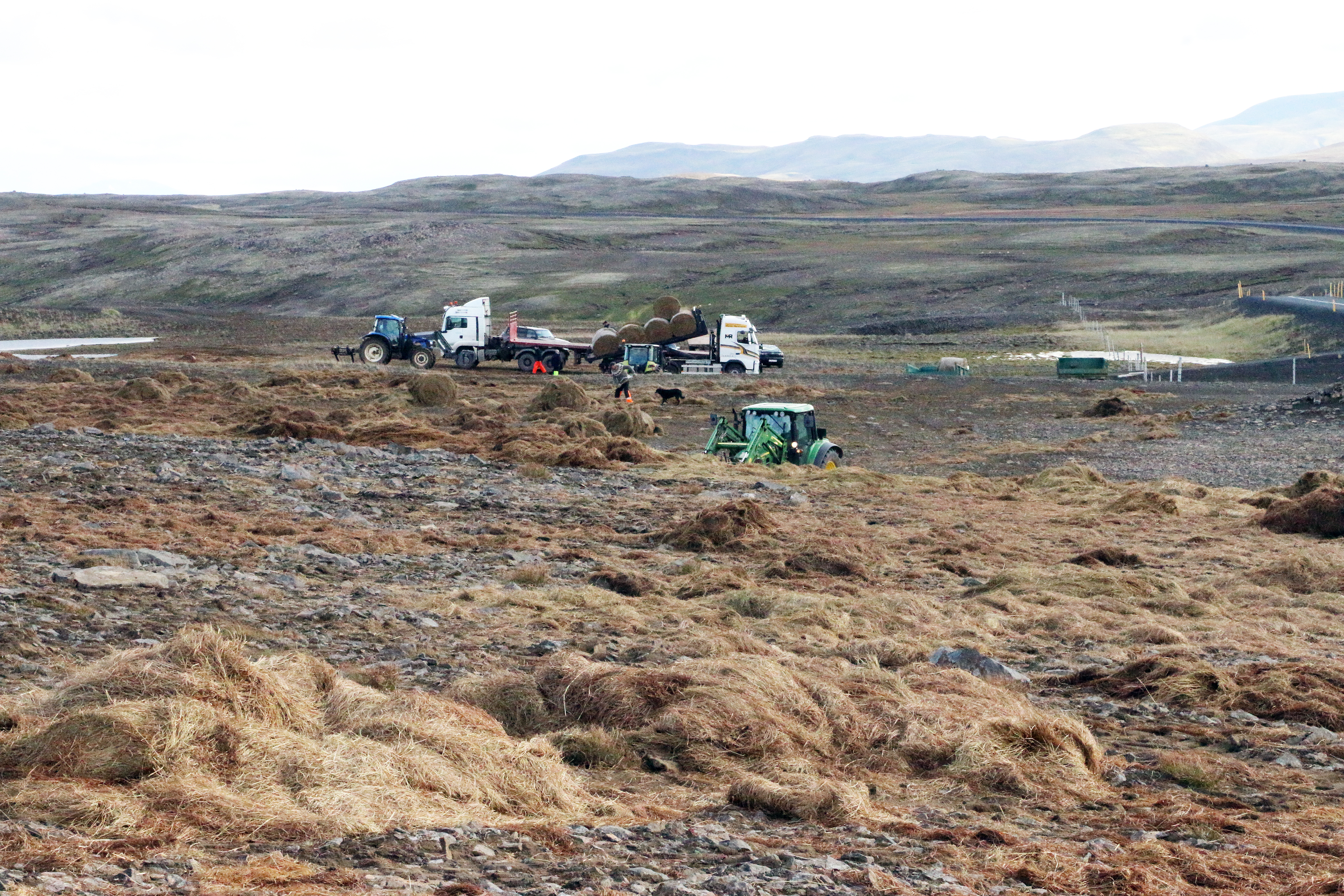 „Þetta er líka mjög góð lausn til að farga heyinu og með þessu móti gerir það gagn,“ segir hann. Þátttaka var með ágætum, en um 25 manns mættu á staðinn, m.a. vörubíla- og vinnuvélaeigendur, verktakar sem tóku þátt í að flytja heyrúllur á staðinn og dreifa úr þeim.
