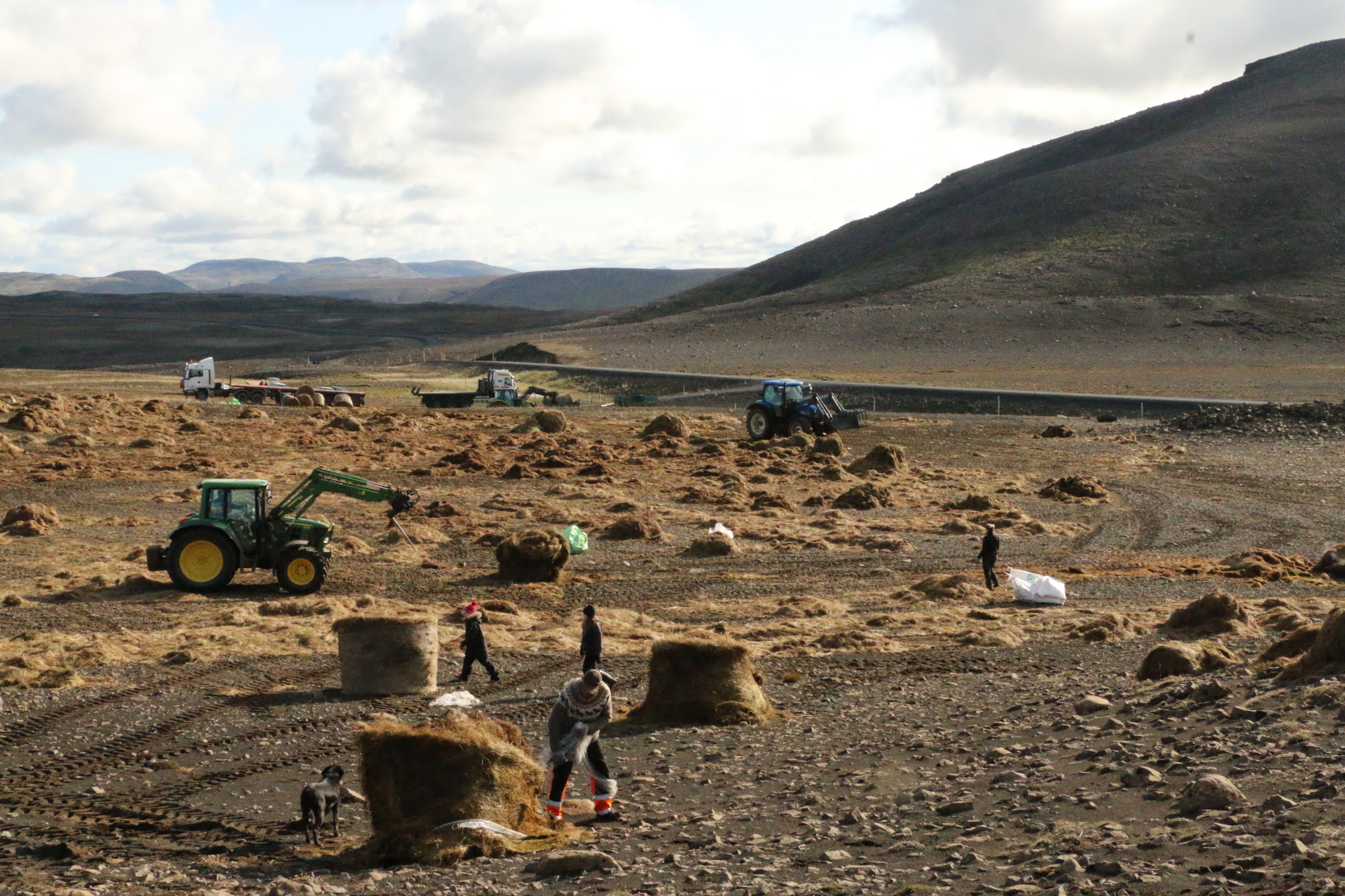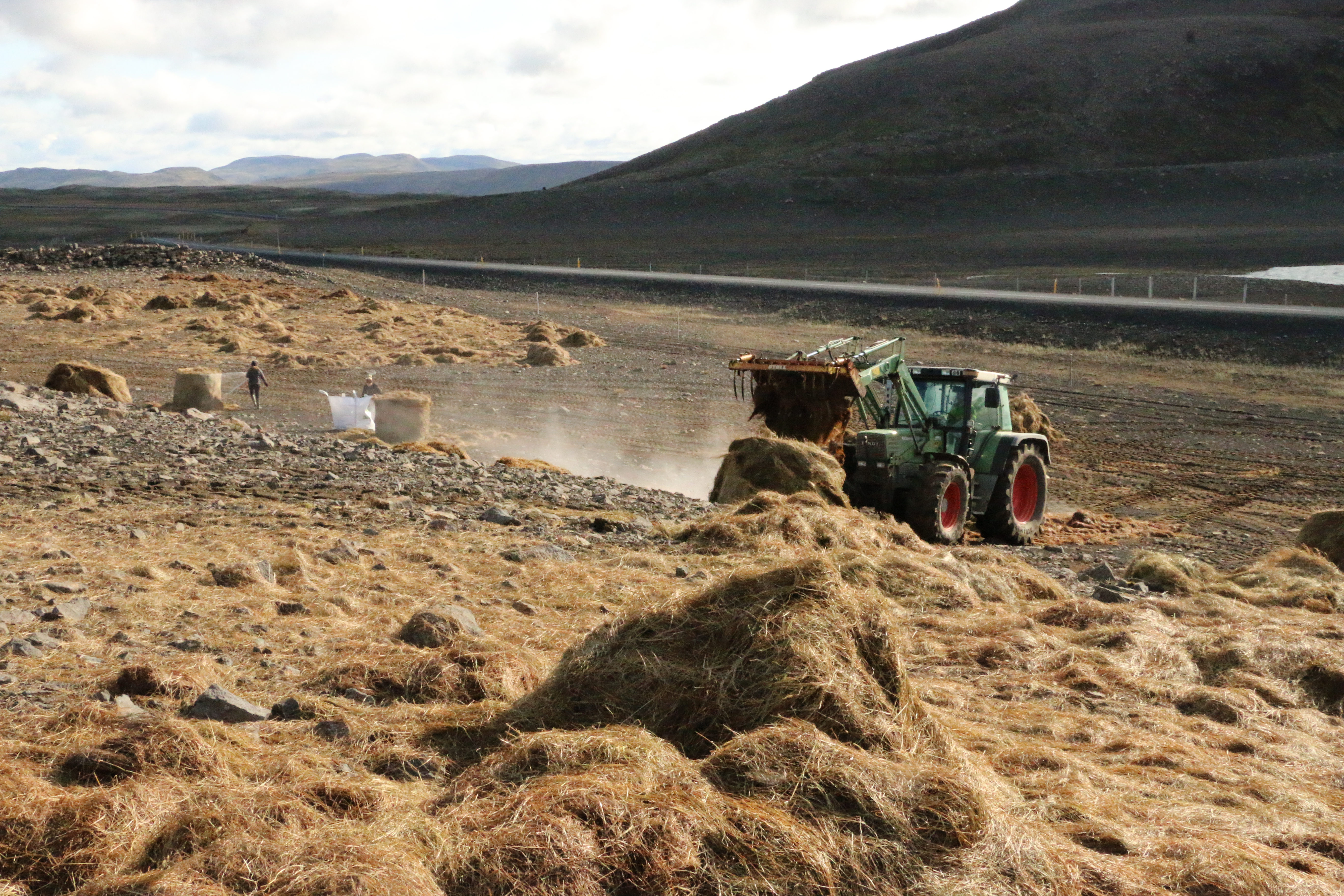 Ónýtar heyrúllur nýttar til uppgræðslu á Hófaskarðsleið