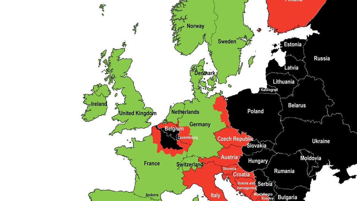 Útbreiðsla afrísku svínapestarinnar í Evrópu í nóvember 2019.