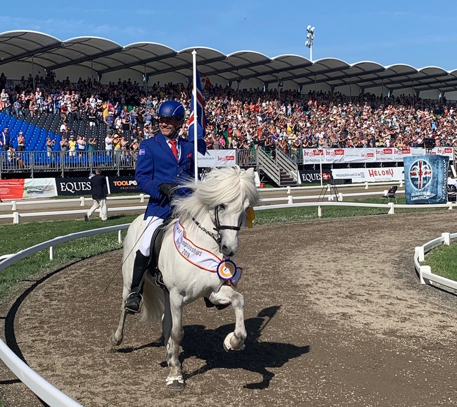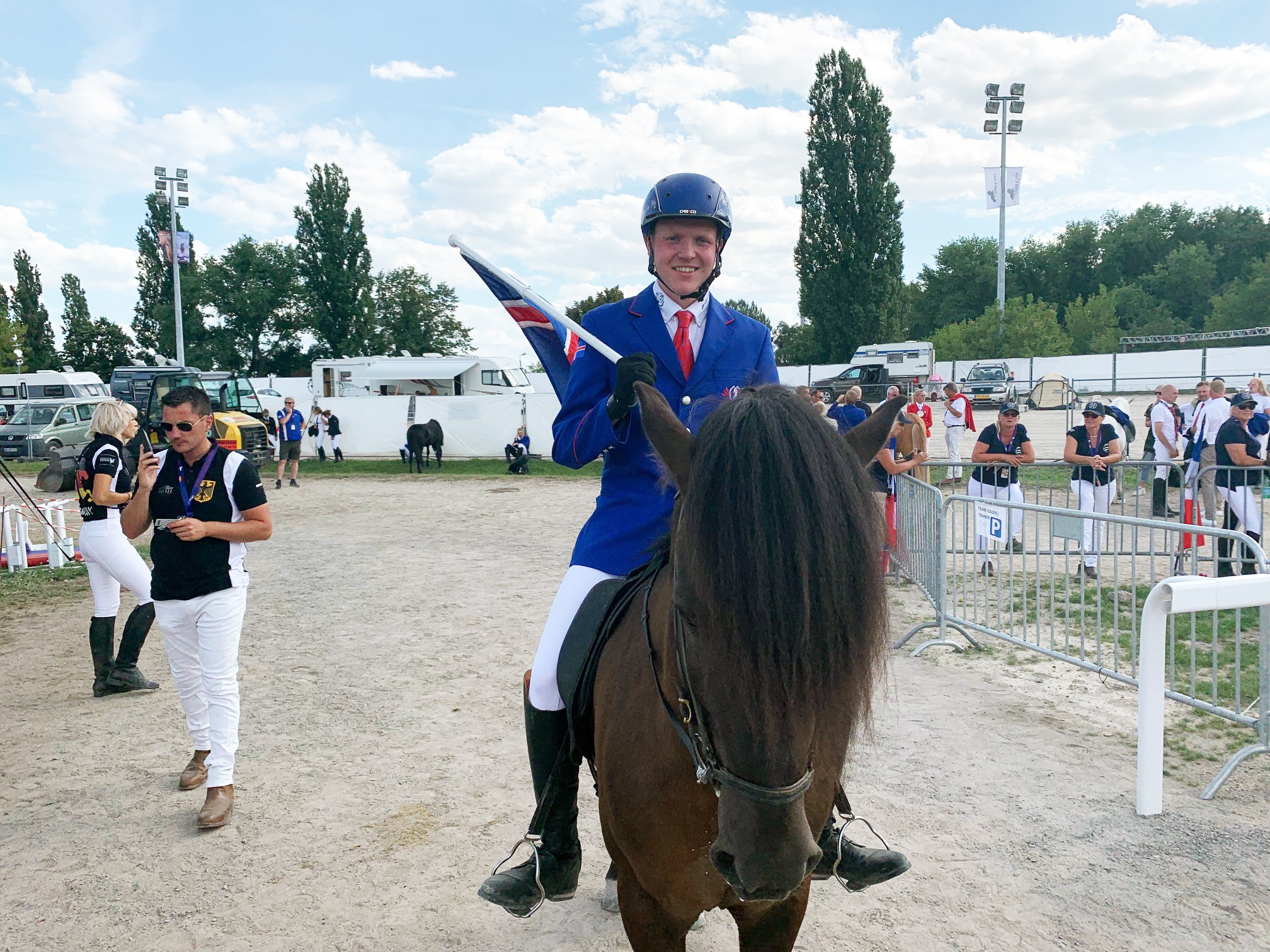 Úrslita í tölti fullorðinna er jafnan beðið með mikilli eftirvæntingu, en þau fóru fram rétt rúmlega níu í morgun, en hafa hingað til yfirleitt verið lokapunkturinn á dagskrá mótanna. Nokkuð var rætt um þessa uppröðun og hversu snemma dagskráin byrjaði, en fólk reif sig upp snemma og mætti eldhresst í stúkuna þrátt fyrir þetta. Jóhann Rúnar Skúlason var efstur eftir forkeppni og hann reið inn á fullur af sjálfstrausti og sigurvilja og stimplaði sig inn strax á hæga töltinu þar sem hann fékk 9,50, fyrir hraðabreytingar fékk hann 9,0 og að lokum fyrir greitt tölt 9,33, sem þýddi 9,28 í lokaeinkunn. Jóhann vann örugglega og lyfti því tölthorninu enn einu sinni fyrir Ísland við mikil fagnaðarlæti áhorfenda.