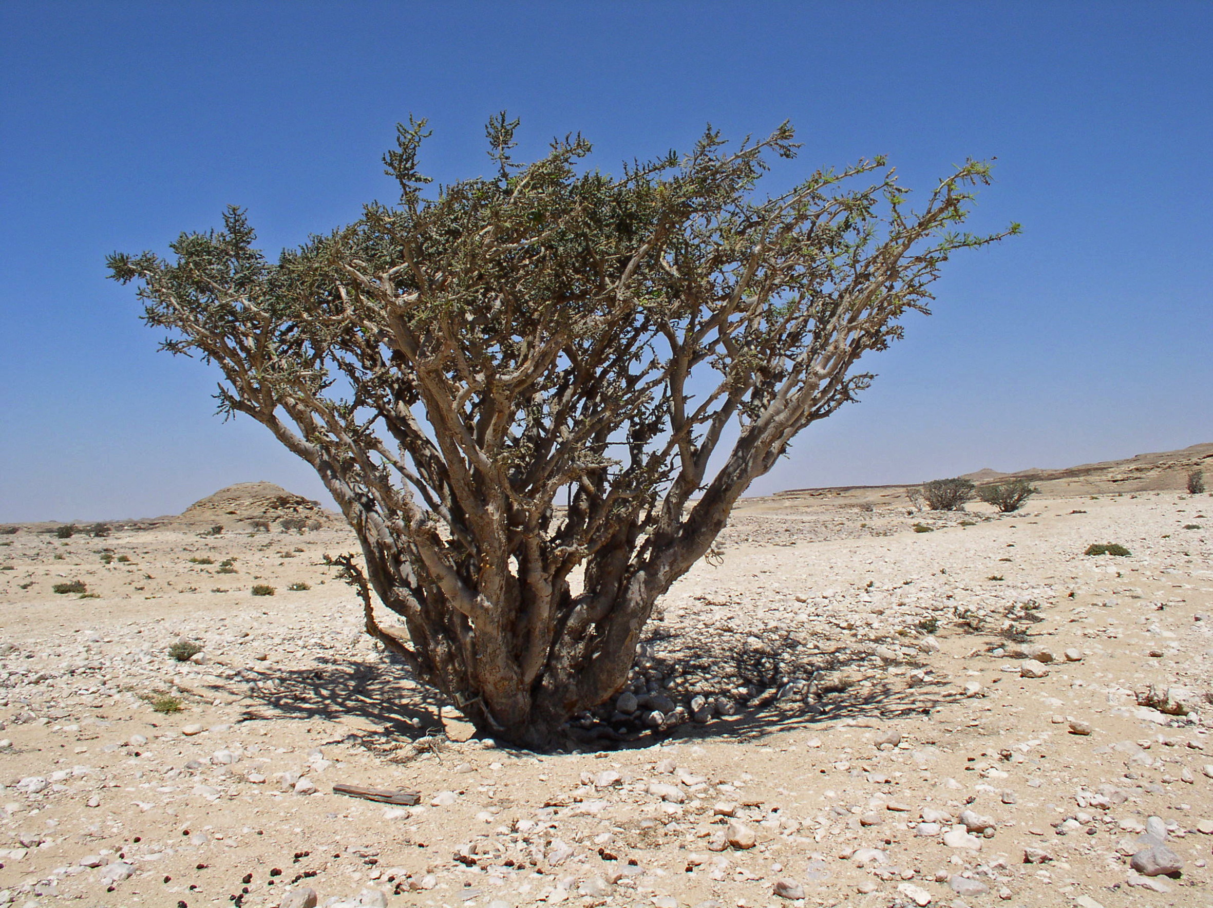 Reykelsistré, Boswellia sacra, í eyðimörk.