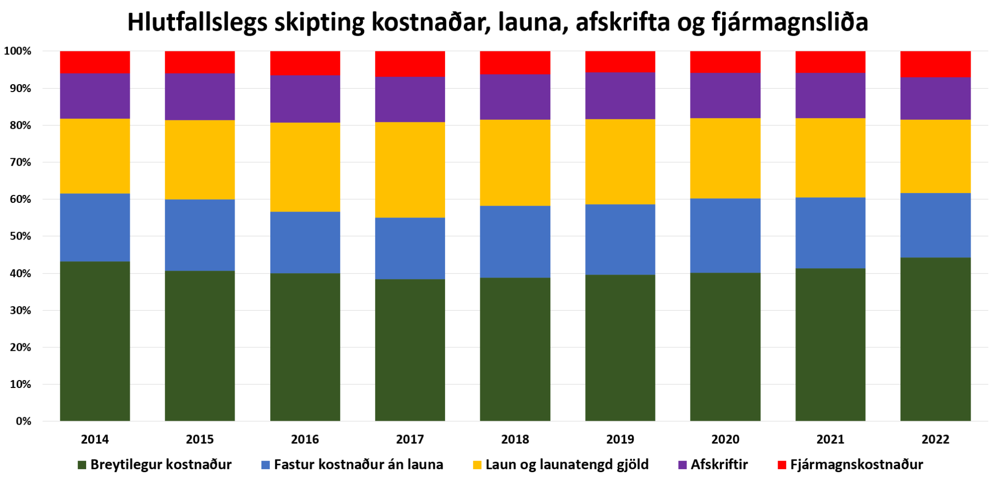 Á mynd 2 má sjá hlutfallslega skiptingu helstu kostnaðarliða eftir árum.