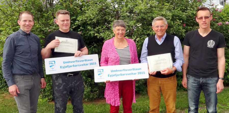 Ábúendur að Reykhúsum ytri og staðarhaldari í Laugaborg tóku á móti umhverfisverð- launum Eyjafjarðarsveitar fyrir tímabilið 2015 til 2017 nú nýverið. Umhverfisverðlaun Eyjafjarðarsveitar eru afhent annað hvert ár. Markmiðið er að sýna þakklæti fyrir lofsvert framtak til fegrunar umhverfisins og auka umhverfisvitund íbúa sveitarfélagsins.