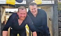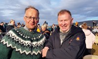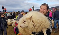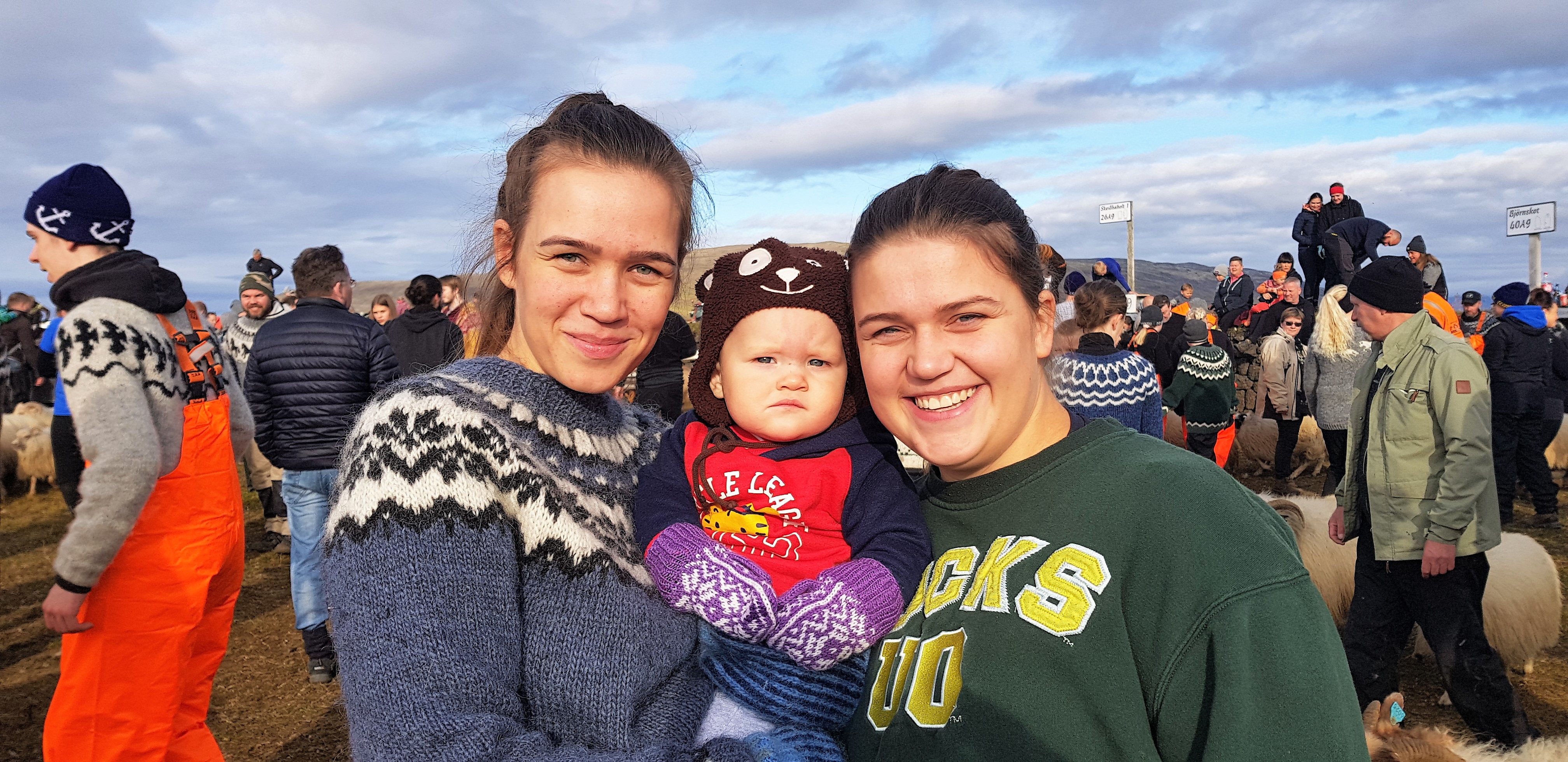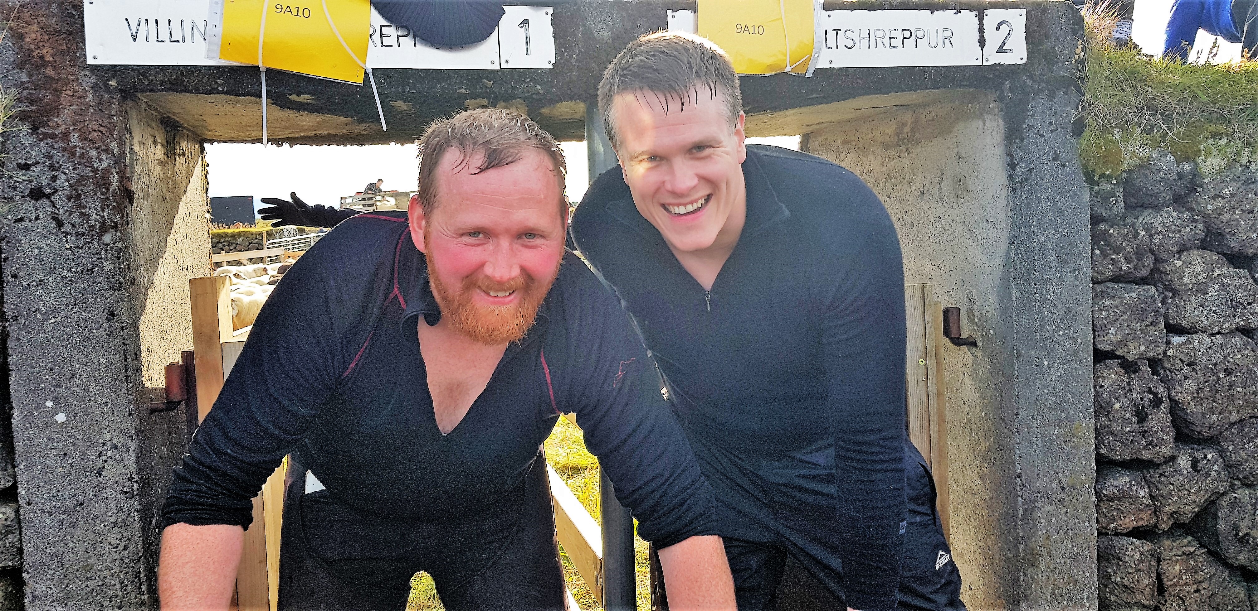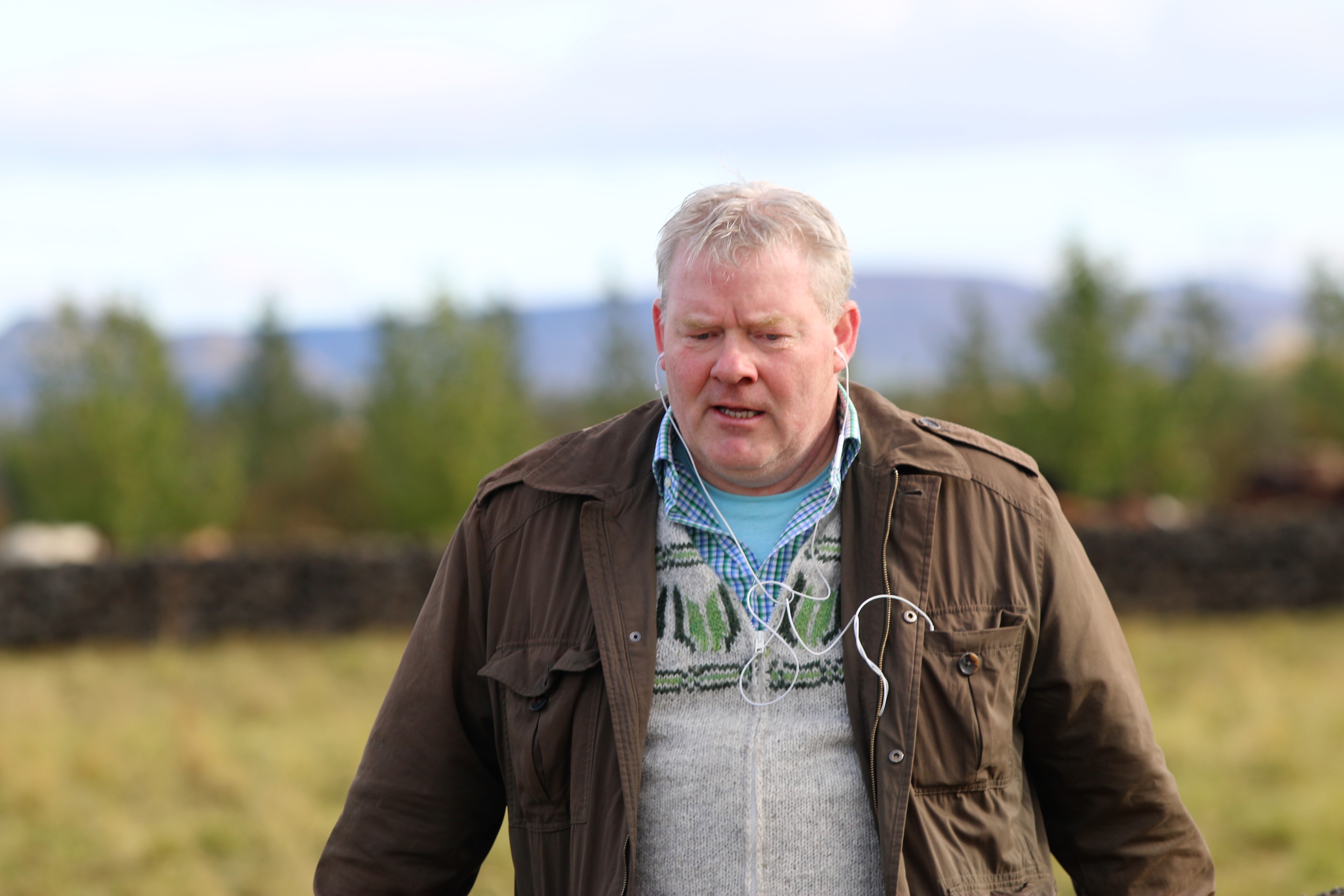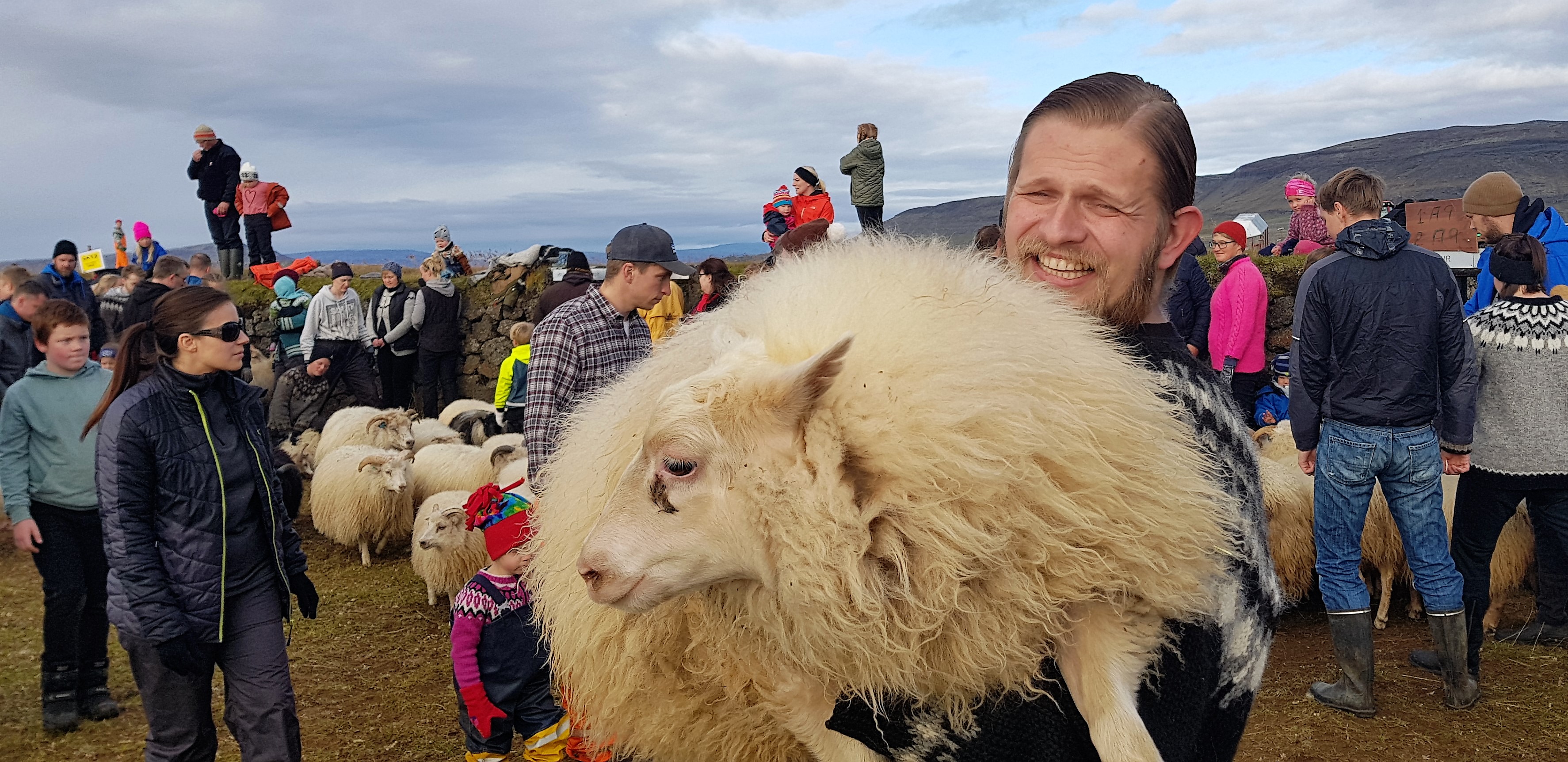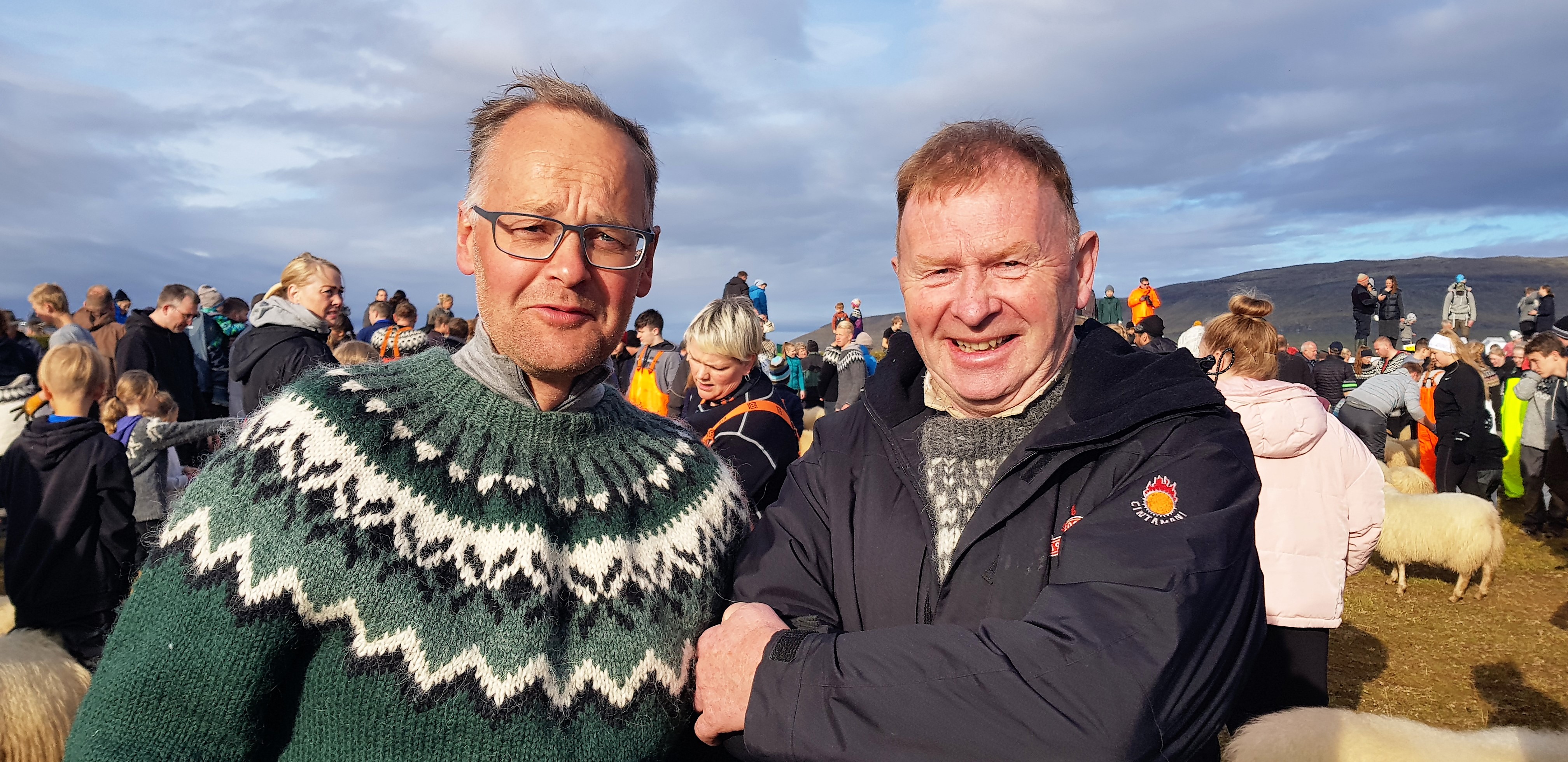 Graham Whaite  frá Skotlandi mætti í skotapilsi í réttirnar og hjálpaði bændum við að draga. Hann var í heimsókn á Íslandi í nokkra daga þar sem hann kynnti sér m.a. starfsemina í Þingborg í Flóa hjá prjónakonunum.