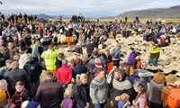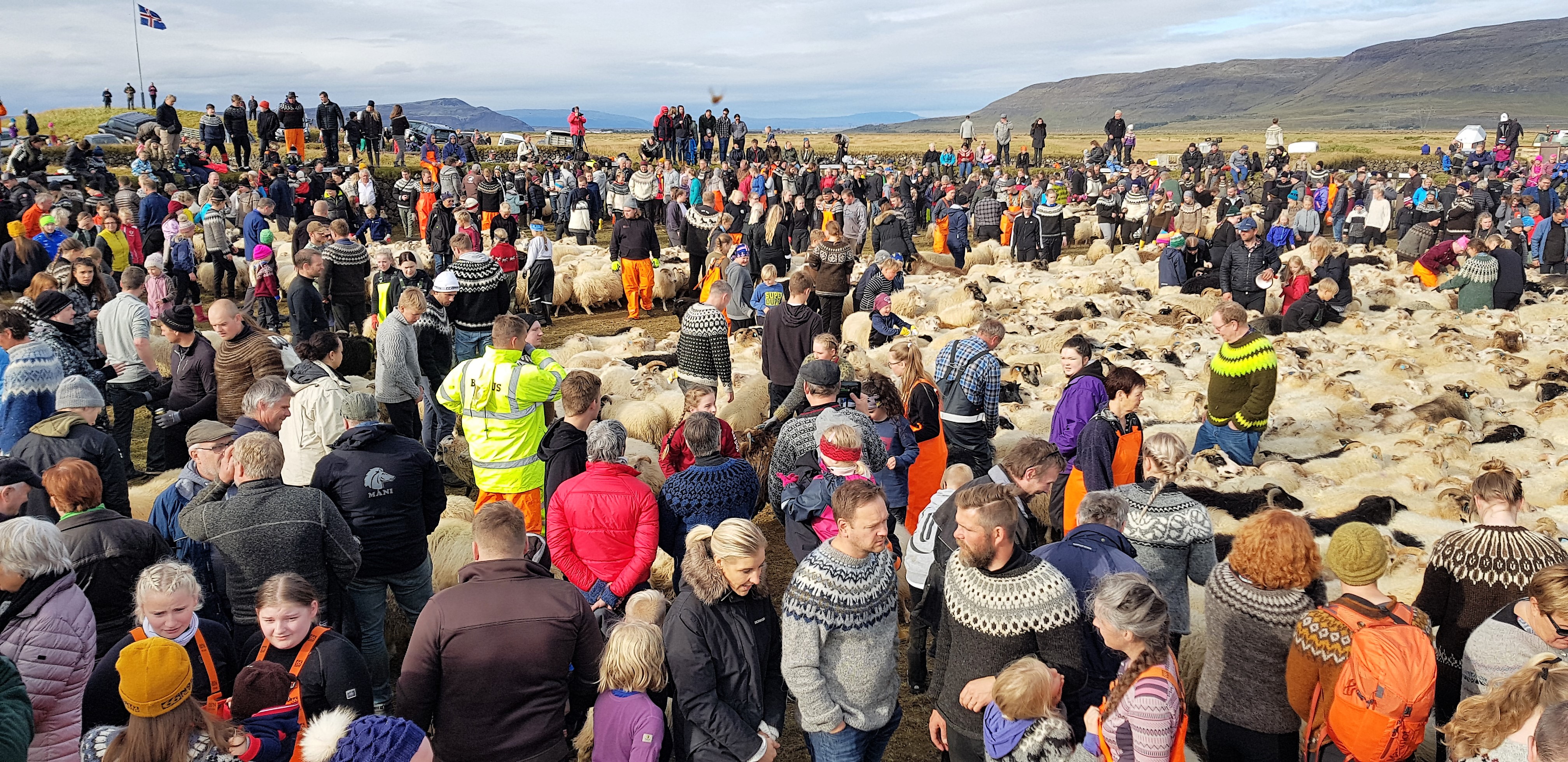 Mikill mannfjöldi var í réttunum og stemningin góð. Á milli sex þúsund og fimm hundruð og sjö þúsund fjár voru í réttunum.