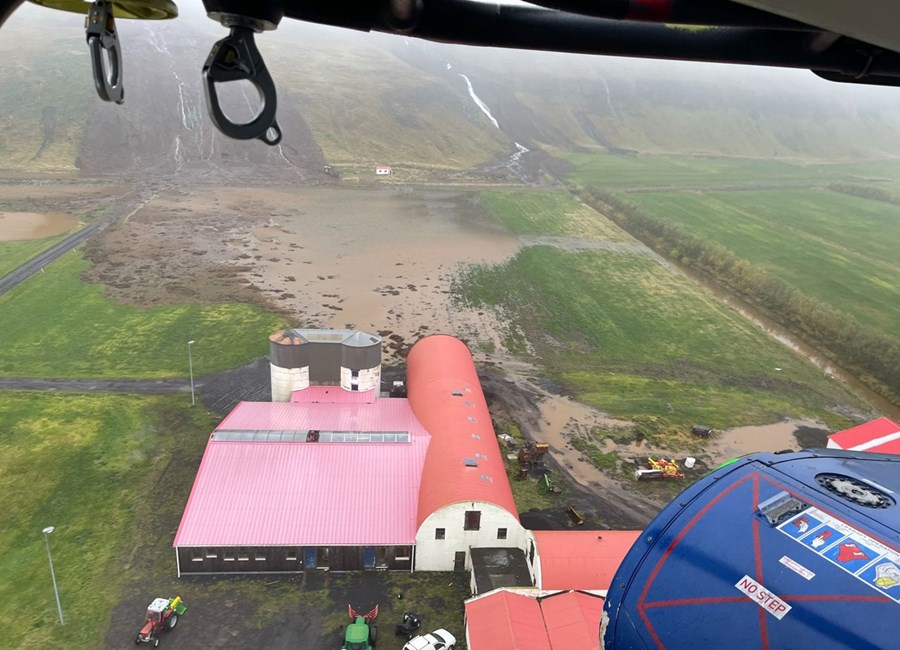 Var þyrla Landhelgisgæslunnar notuð til að hjálpa til við rýmingu og hafa bændur fengið aðstoð björgunarsveita til að komast í aðkallandi bústörf eins og mjaltir.