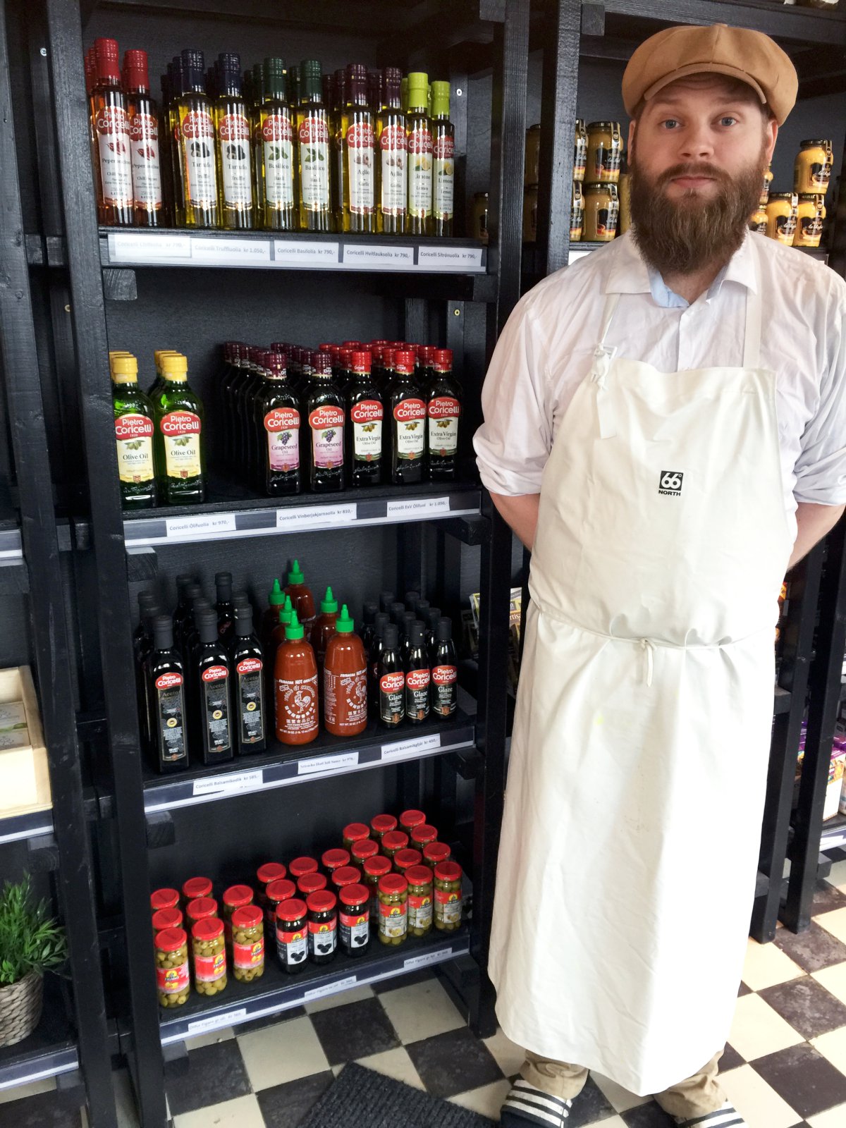 Við viljum helst vera með vörur sem þú færð að öllum líkindum ekki annars staðar. Við erum með nokkuð fjölbreytt úrval af því og ég get nefnt Sriracha-sósu, sem er sterk sósa, mikið úrval af ólífuvörum, niðursoðna tómata í basillegi og sólþurrkaða tómata. Þetta hefur verið mjög vinsælt hjá okkur af því sem má kalla unnar matvörur og fæst í krukkum og dósum. Það má líka nefna að við erum nýlega komin með niðursoðin andalæri og höfum líka selt andalæri frá veitingastaðnum Snaps.