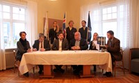 Við undirritun samninga sem fram fór í Höfða á bóndadaginn. Talið frá vinstri: Jóna Dís Bragadóttir, LH, Lárus Hannesson, LH, Dagur B. Eggertsson borgarstjóri, Hjörtur Bergstað, Fáki, Ingibjörg Guðmunds­dóttir, Fáki og Elías Blöndal frá BÍ.