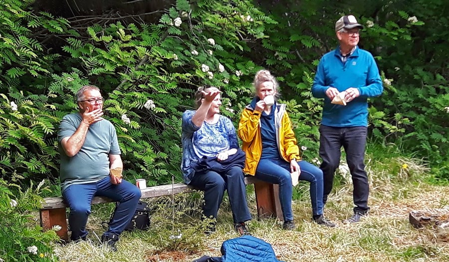 Skrifað hefur verið undir samning um lagningu göngu-, hjóla- og unaðsstígs í Vaðlareit sem er í eigu Skógræktarfélags Eyfirðinga. Myndin er tekin eina ljúfa og liðna stund í reitnum.