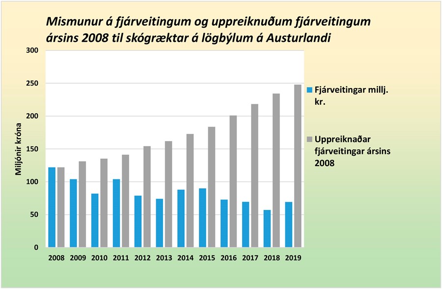 Dæmi um þetta er að fyrsta grisjun er lykilatriði í að tryggja verðmæti skóga og nú tekst ekki að fylgja eftir þörfinni fyrir fyrstu grisjun, sem orðin er aðkallandi á Austurlandi vegna fjárskorts.