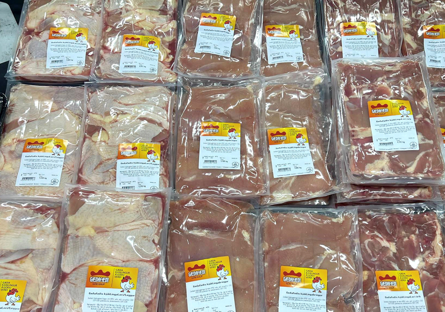 „Við erum með fullvinnslu, þannig erum við bæði að marinera, forelda læri og bringur, snitsel og fleira. Við seljum þetta til mötuneyta, veitingahúsa og verslana um allt land. Það er allur gangur á því undir hvaða vörumerkjum úkraínska kjötið er merkt, ekki verið nein ein lína í því,“ segir hann.