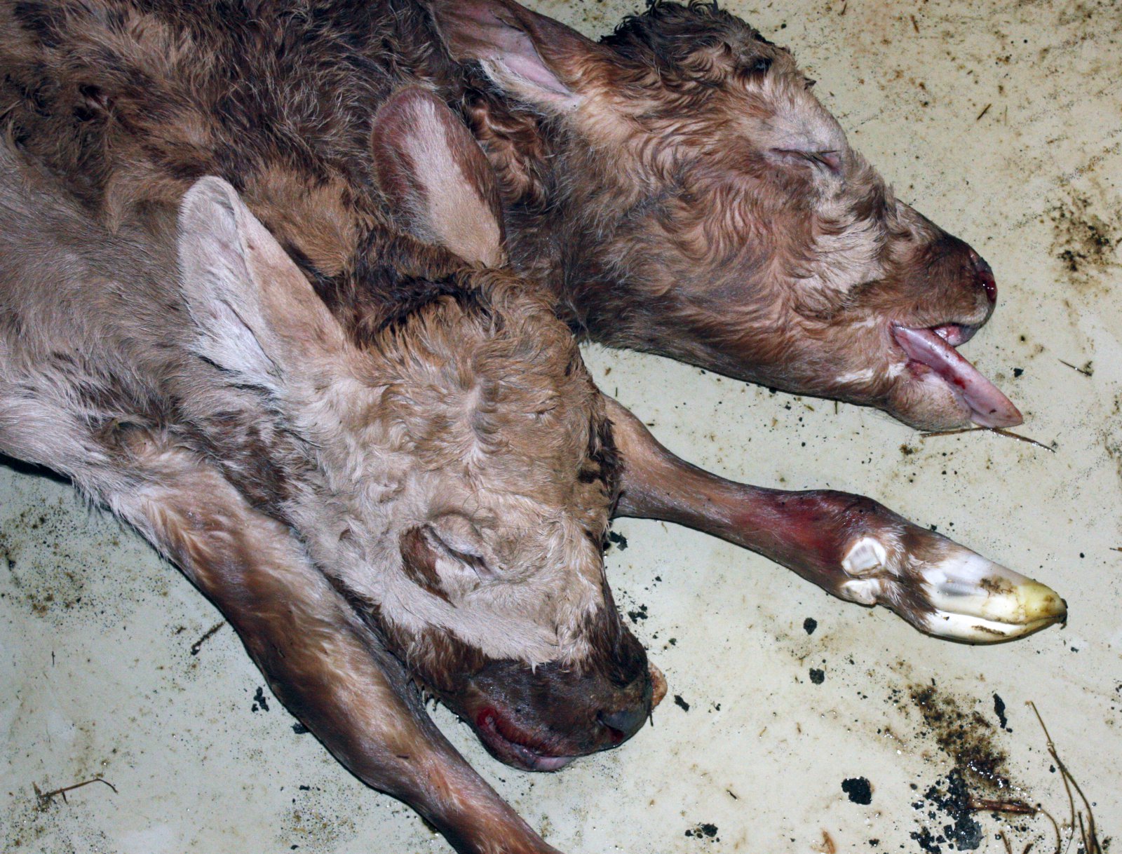 „Þetta er einn búkur með tvo hausa, tvo hala og tvær hryggjarsúlur. Búkurinn er mjög afmyndaður en dýrið er aðeins með fjóra fætur. Þetta er í fyrsta sinn sem ég lendi í svona með kú,“ segir Kristín. Hún fékk að hirða kálfinn og ætlar að nota hann í kennslu á Hvanneyri þar sem nemendur fá að kryfja tvíkelfinginn.