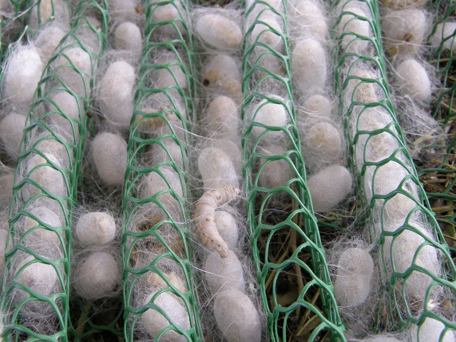 Úr hverri púpu fást 300 til 900 metrar af örfínum silkiþræði. Þráðurinn er svo léttur að það þarf 10.000 til 12.500 púpur til að framleiða eitt kíló af silki.